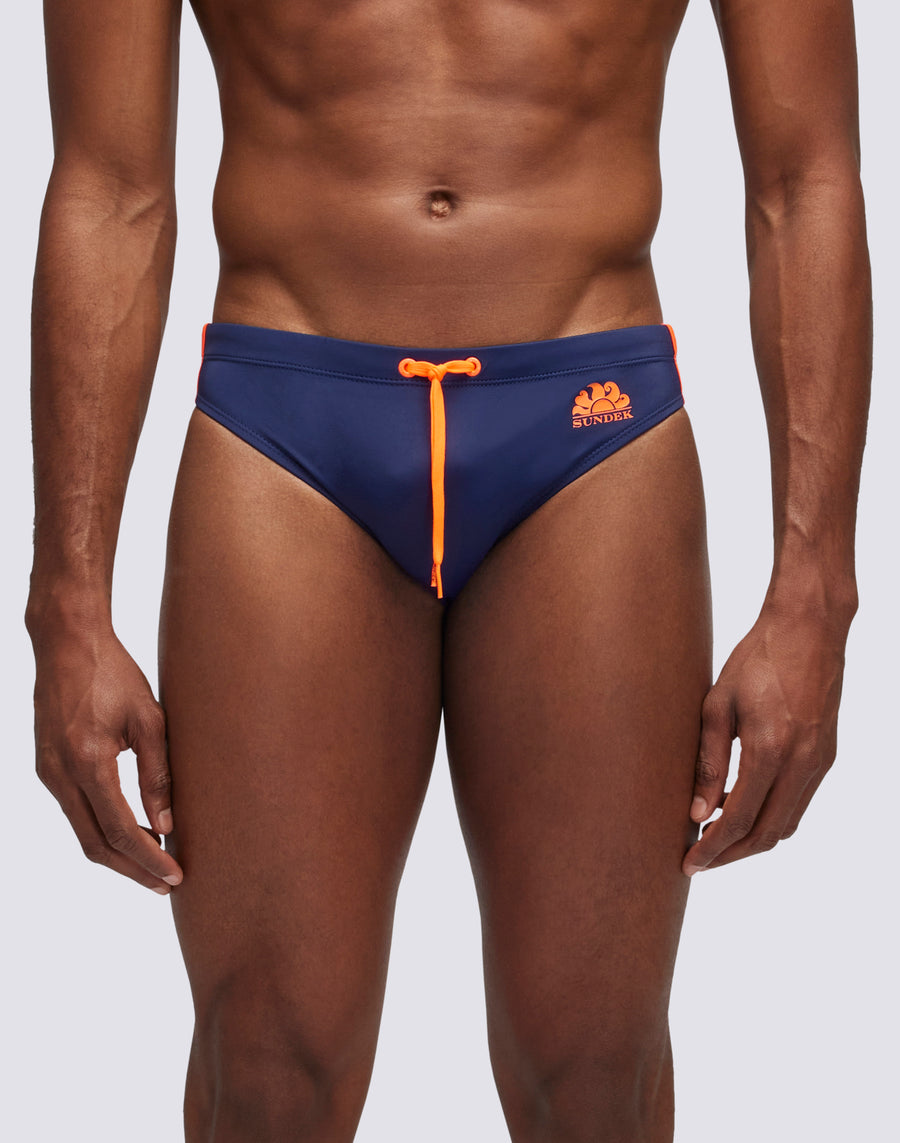 Slip pour homme de couleur unie avec ceinture réglable. Le slip de bain de couleur unie avec cordon de serrage et trois bandes latérales de couleur contrastante pour un look audacieux et fonctionnel. Il sèche rapidement et vous apporte confort et durabilité dans et hors de l'eau : portez-le pour la natation et l'entraînement ainsi que pour le repos et les bains de soleil.