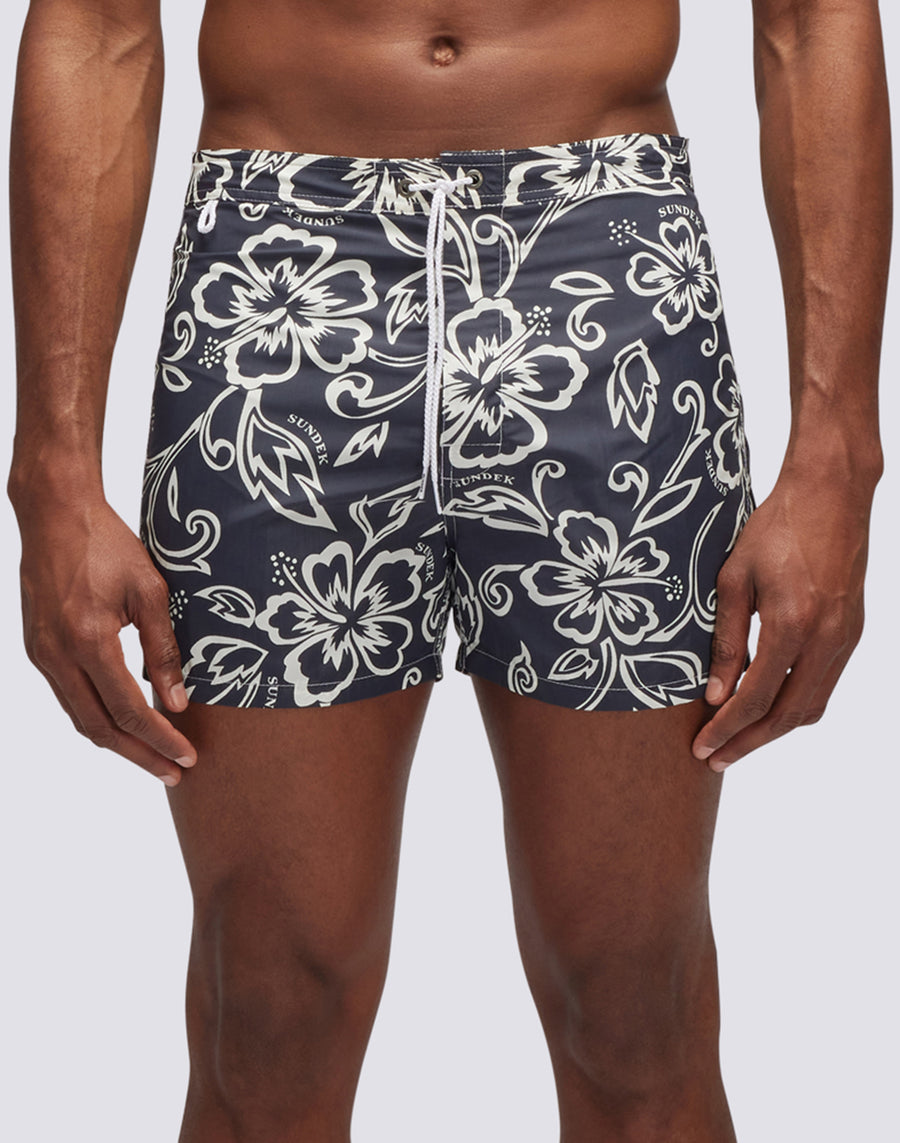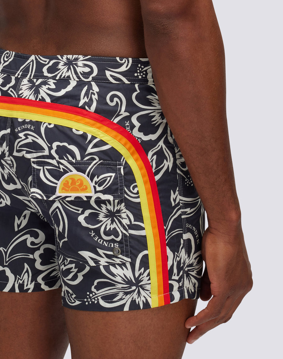 MAILLOT DE BAIN COURT TAILLE FIXE TAFFETA ICONIQUE IMPRIMÉ HIBISCUS SK23