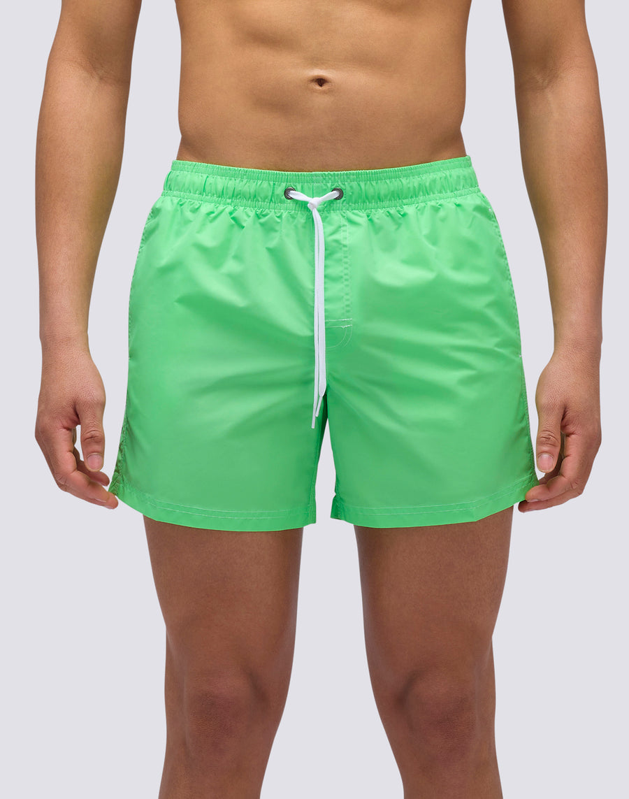 Short de bain court pour homme avec taille élastiquée, cordon de serrage et arc-en-ciel emblématique Sundek dans le dos. Ce maillot de bain est réalisé avec des coutures à trois aiguilles et 100% de notre tissu historique, le nylon-taffetas : doux comme de la soie, léger et résistant à tout, il sèche très rapidement pour vous offrir un confort partout, dans les vagues et en dehors des cascades. Longueur 35 cm (taille M), mesurée à l'extérieur de la jambe.
