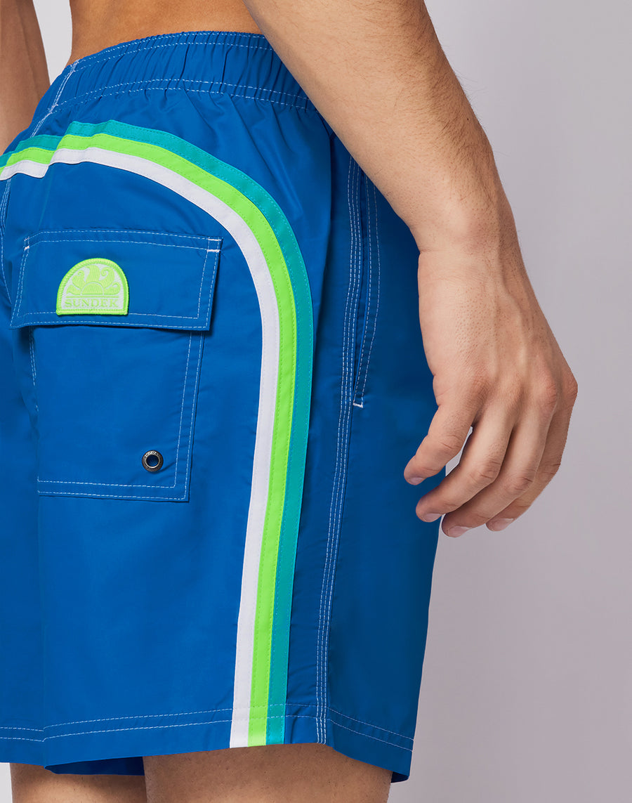 Tout le style intemporel de Sundek dans ce boardshort mi-long avec taille élastiquée. Élégant, confortable, destiné à durer vacances après vacances : c'est notre boardshort classique avec une taille à cordon et un dos arc-en-ciel contrasté, fabriqué dans notre tissu historique en taffetas de nylon léger, à séchage rapide et durable, avec des coutures à trois aiguilles pour un renforcement supplémentaire. Longueur 41 cm (taille M), mesurée à l'extérieur de la jambe.