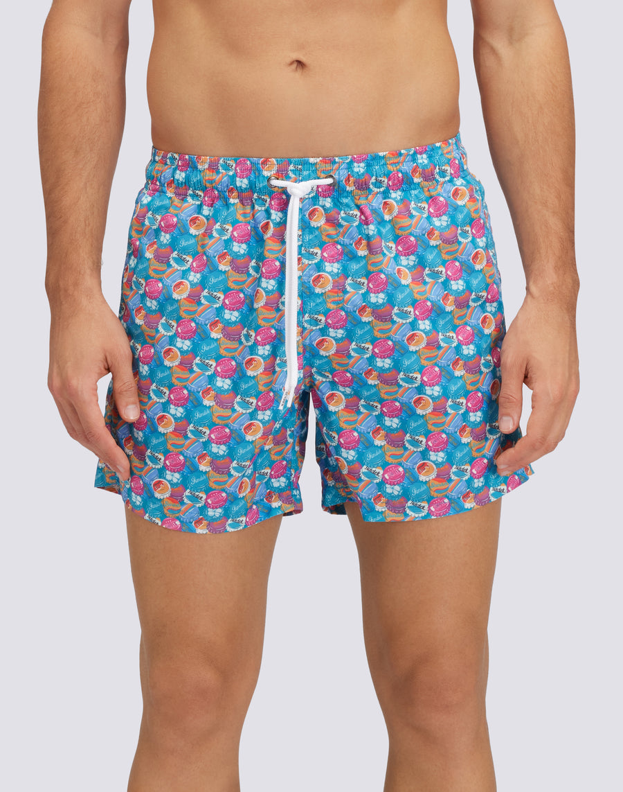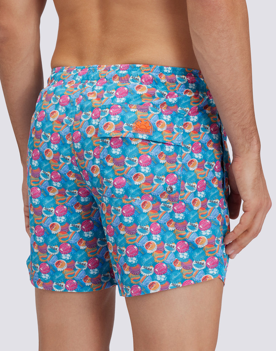 SHORT DE BAIN COURT À TAILLE ÉLASTIQUE AVEC IMPRIMÉ SUNCAP EN POLY RECYCLÉ