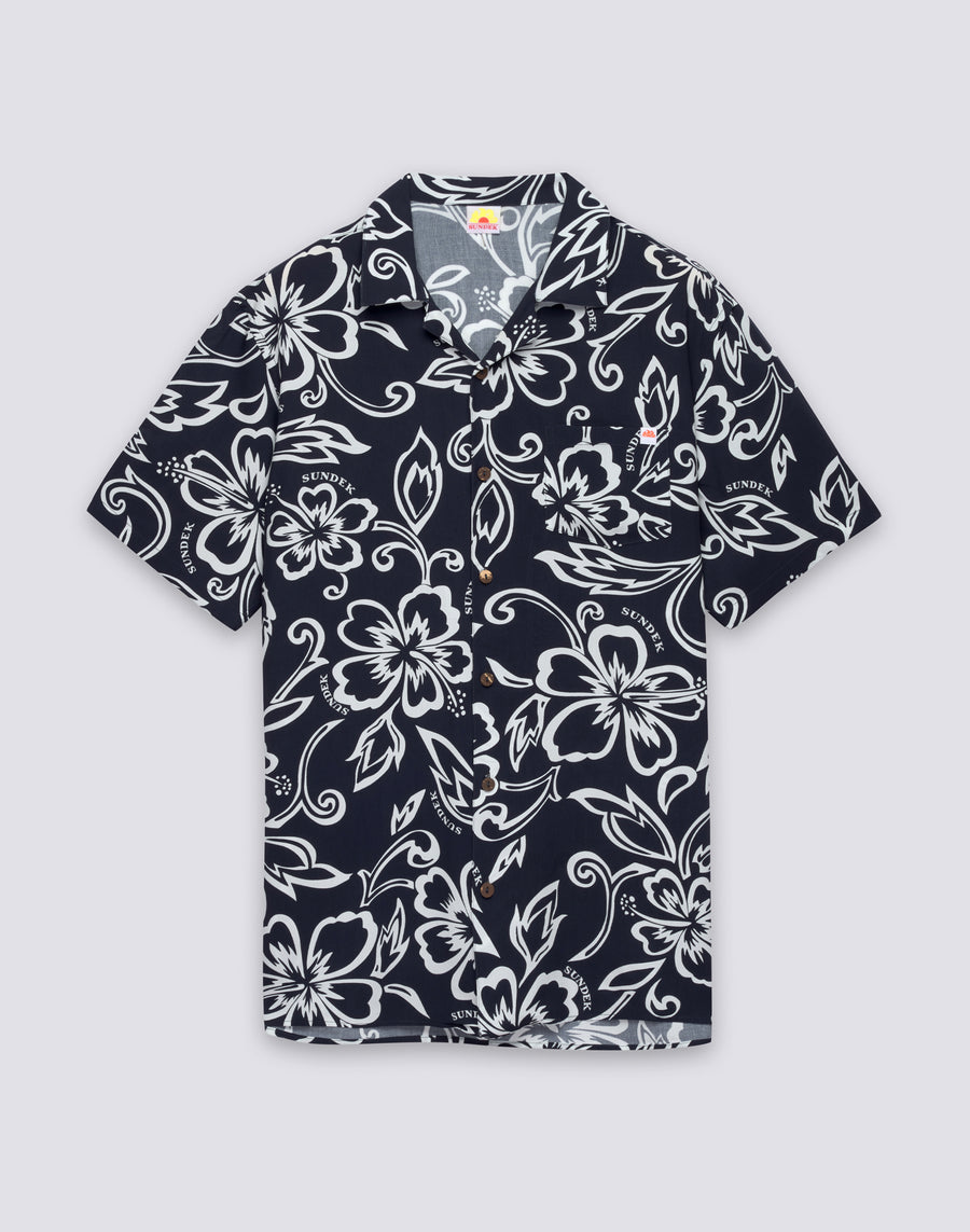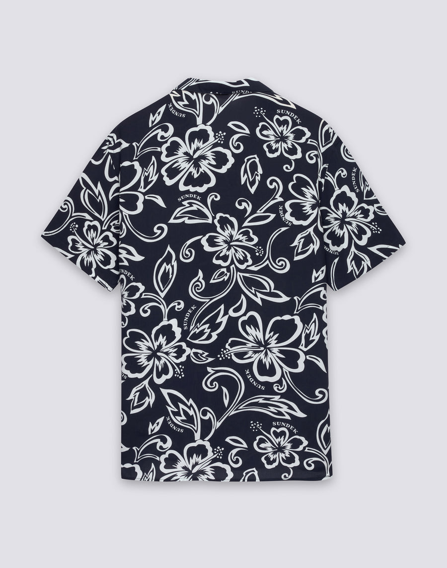 Chemise pour homme modèle bowling imprimée à manches courtes, en viscose popeline. Coupe décontractée.