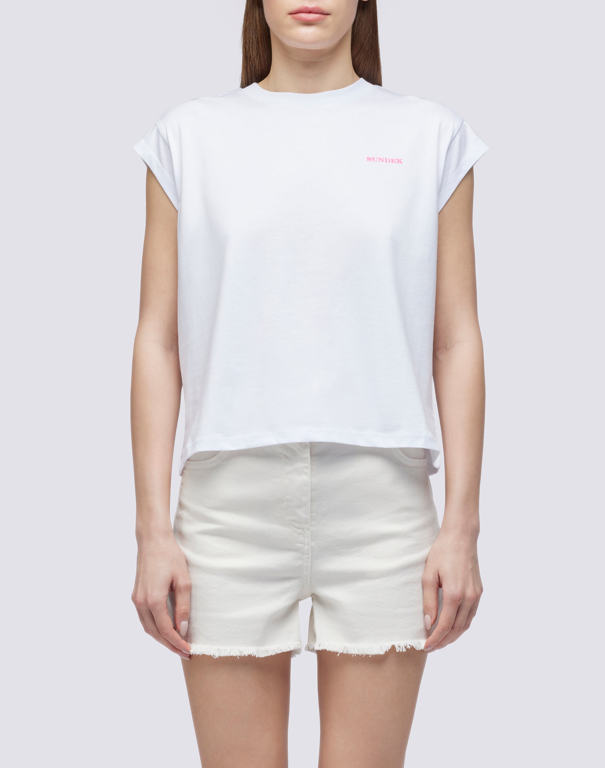T-shirt à coupe boxy pour un look décontracté et moderne. Imprimé maxi dégradé au dos et logo imprimé devant.