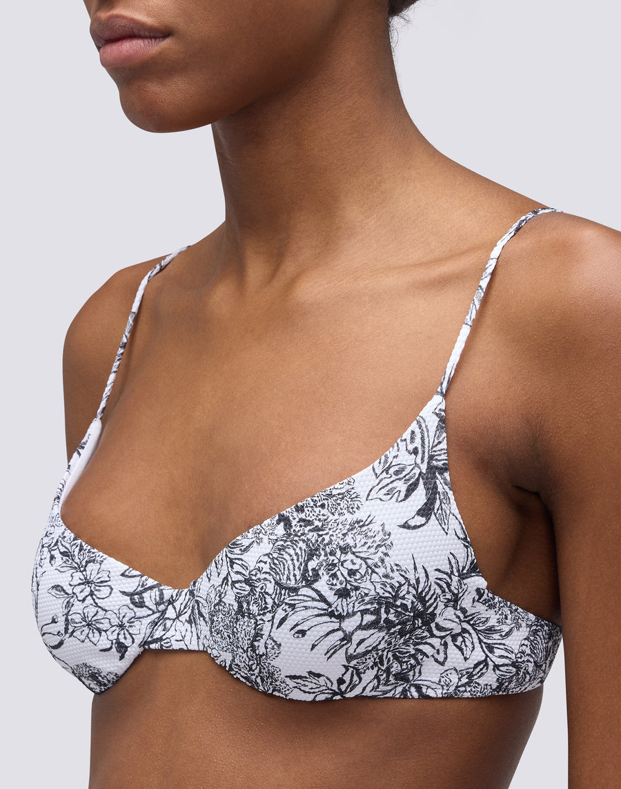 Bralette romantique au motif Fleur de Joie avec armatures et liens réglables. A associer à la culotte assortie pour créer un bikini au style raffiné.