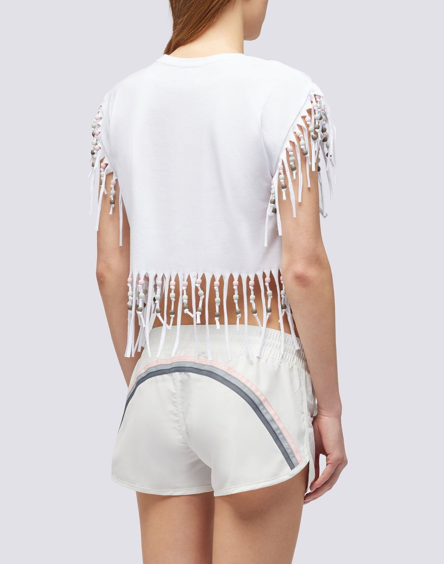 Parfait pour celles qui aiment un look de plage super informel, ce débardeur à franges pour femme est le vêtement idéal pour les journées d'été. Polyvalent et tendance, il est idéal lorsqu'il est associé à un bikini.