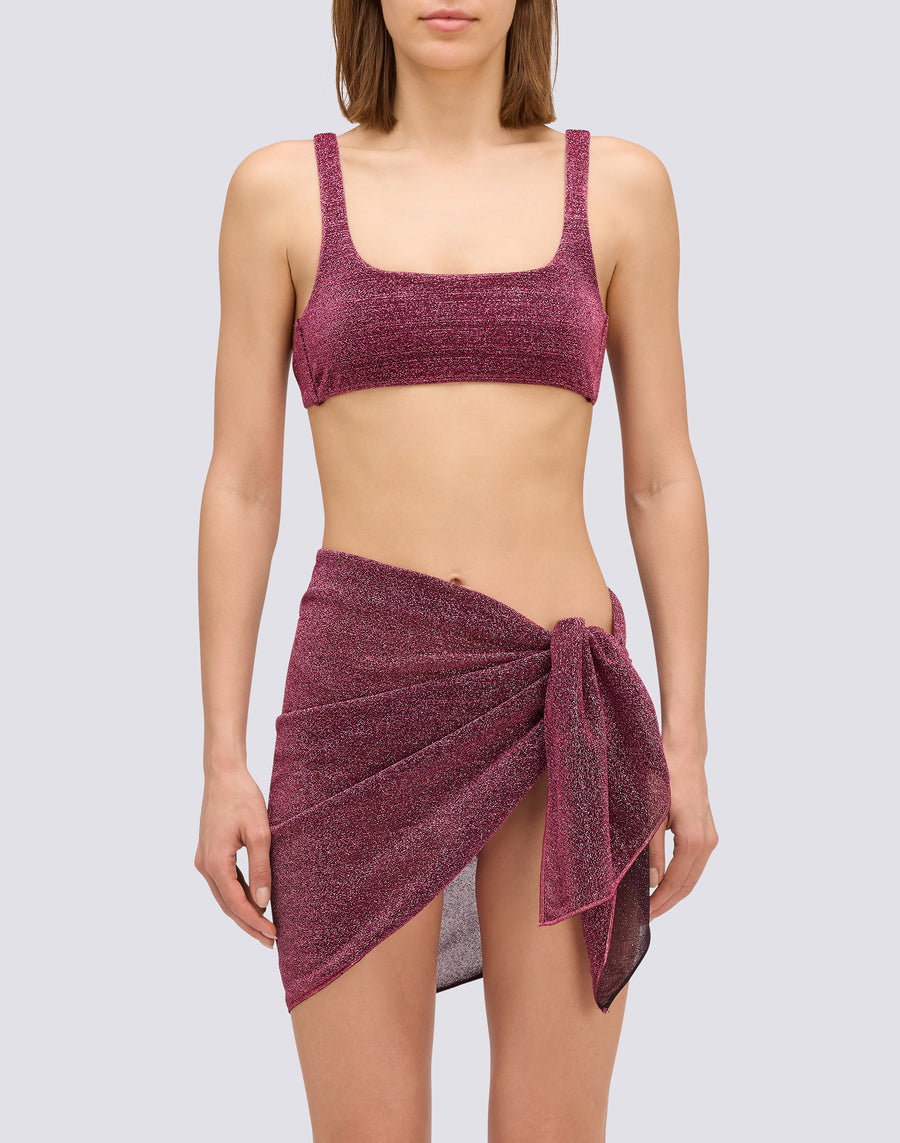 Le paréo court en lurex est l'accessoire parfait pour un look de plage pétillant et glamour. Fabriqué en tissu extensible, il s'adapte parfaitement et peut être facilement associé à votre bikini préféré. Ajoutez une touche de lumière à vos journées à la plage avec ce paréo.