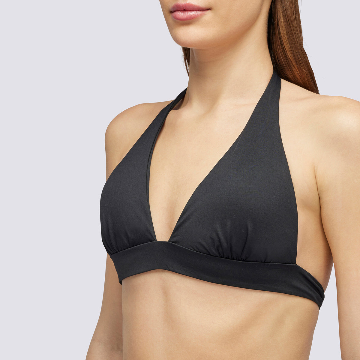 Il bikini a triangolo americano è un classico intramontabile del beachwear. Presenta due coppe a forma di triangolo, spesso scorrevoli per permettere una regolazione personalizzata della copertura. Le spalline si legano dietro al collo (allacciatura all'americana) e sulla schiena, offrendo un buon sostegno e valorizzando il décolleté. Può essere con o senza imbottitura, con coppe fisse o estraibili. L'allacciatura al collo e i lacci più larghi del triangolo classico, offrono un buon sostegno e permettono di adattare la vestibilità in base alle proprie esigenze.