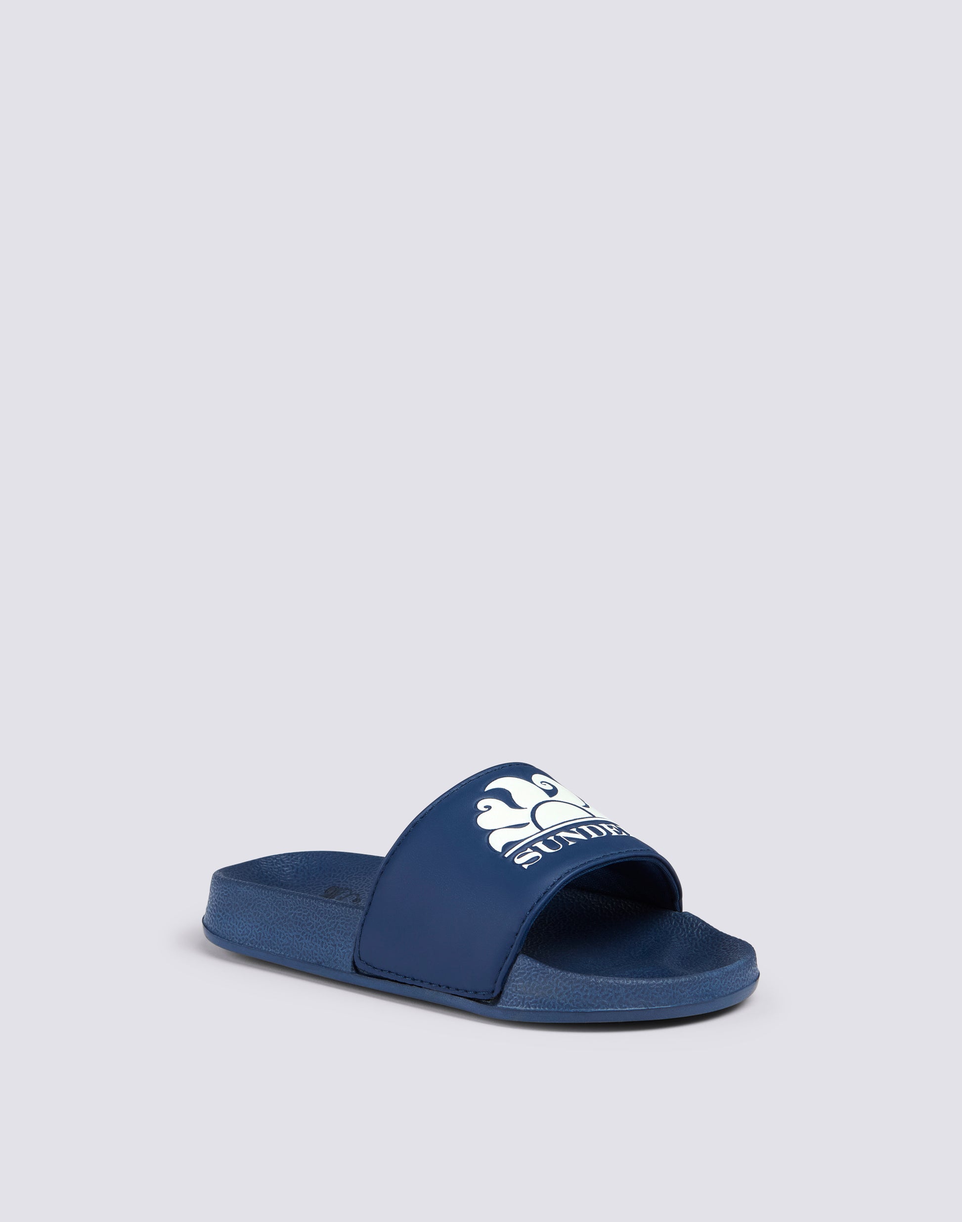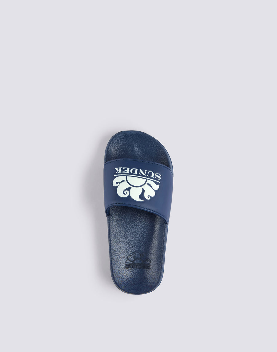 Ciabatte a fascia Costa da bambino, gommate e dalla calzata confortevole. Si caratterizzano per la stampa del logo Sundek sulla fascia, a contrasto, e per l'altezza della suola di 2,5 cm.