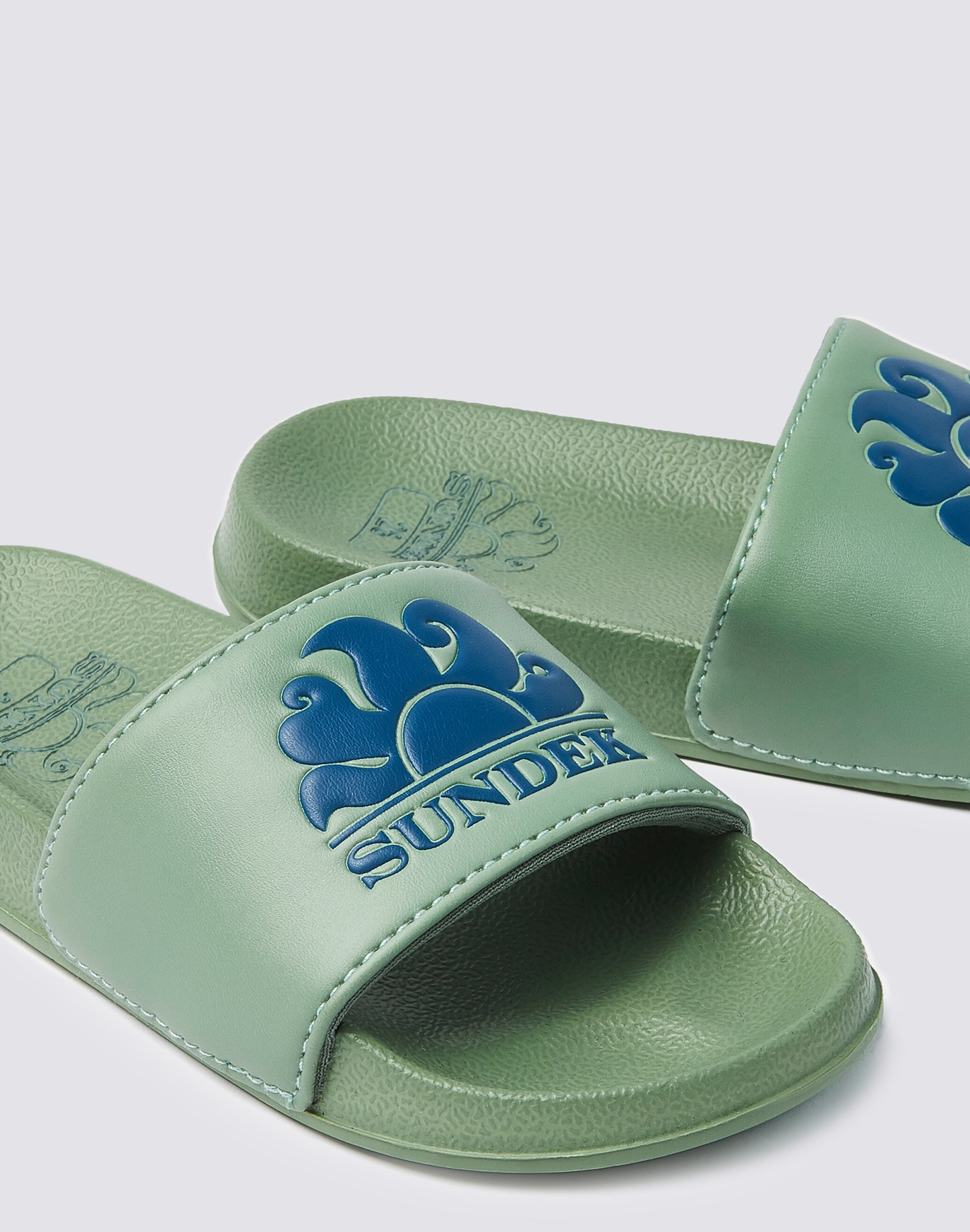 Ciabatte a fascia Costa da bambino, gommate e dalla calzata confortevole. Si caratterizzano per la stampa del logo Sundek sulla fascia, a contrasto, e per l'altezza della suola di 2,5 cm.