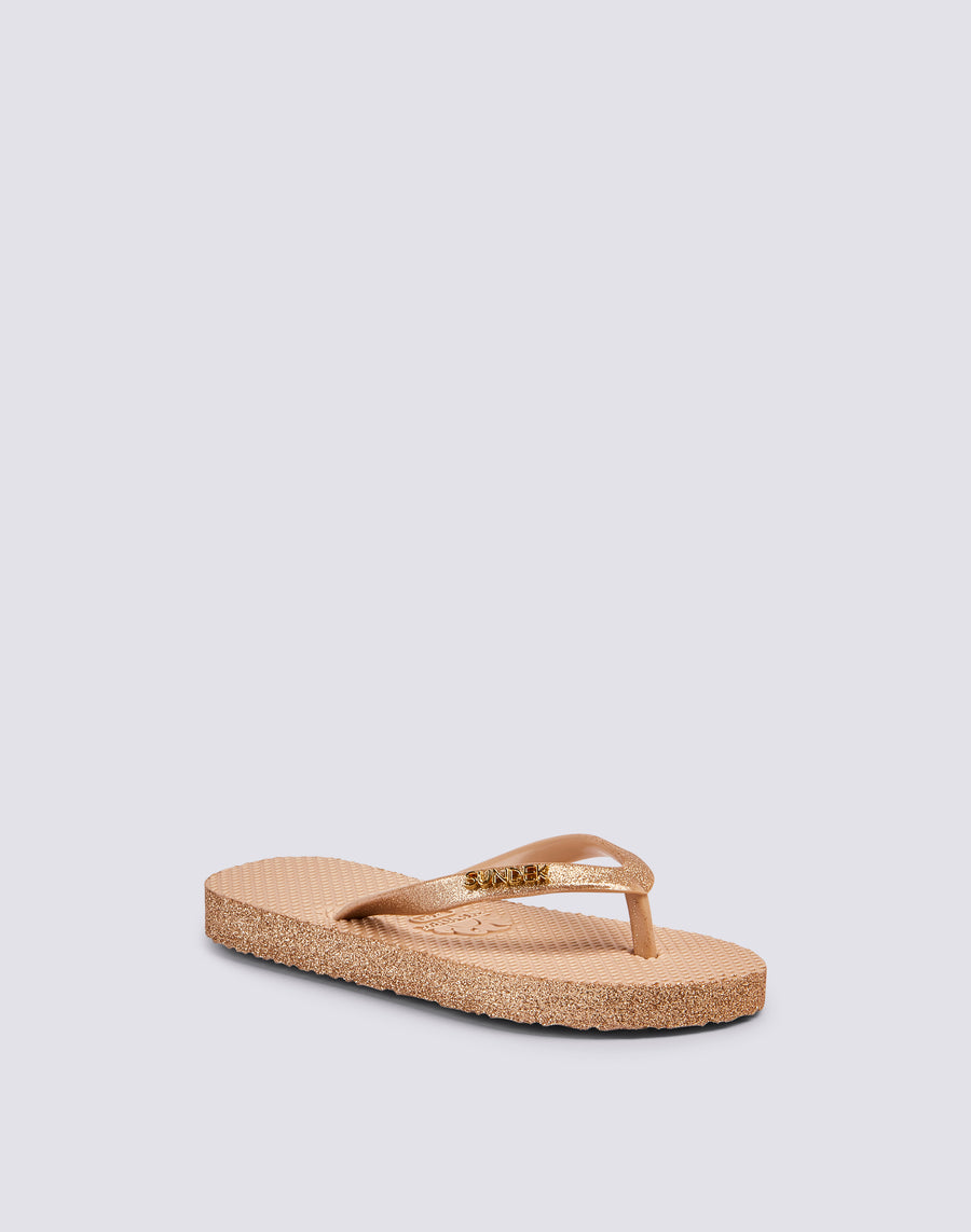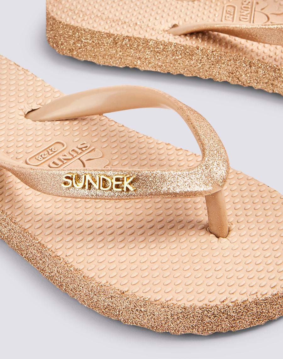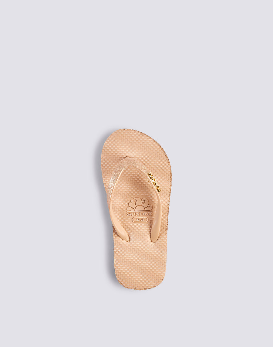 Mini infradito da bambina in gomma con scritta SUNDEK glitterata.