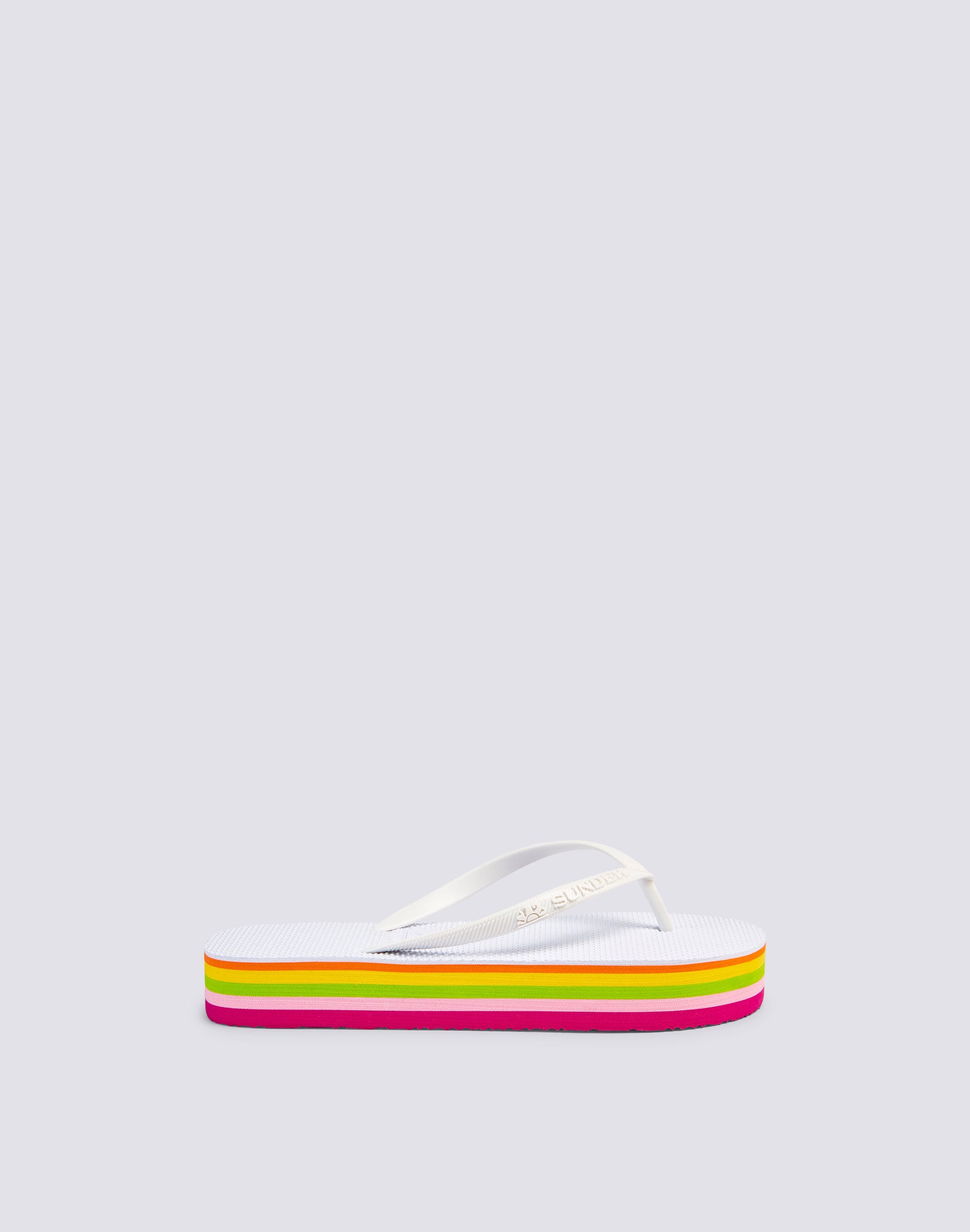 Se non rinunci mai al platform, sceglilo anche per le tue infradito da mare: attuali, leggere, comode e con il dettaglio multicolor che completa la suola extra. Altezza suola 4 cm.