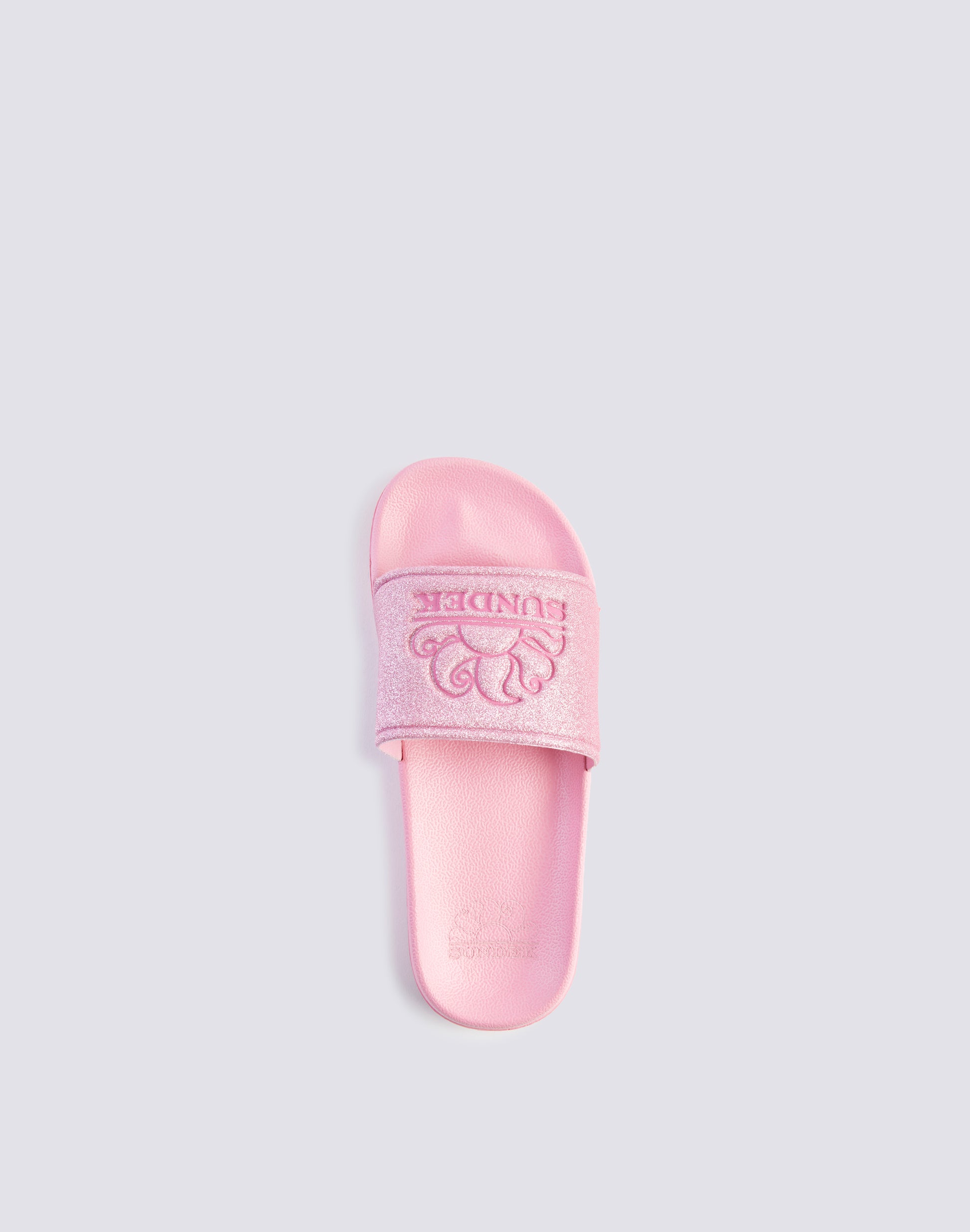 Ciabatte mare con fascia effetto glitter, per il mare, la piscina e per tutte le occasioni in cui non rinunci ad abbinare comfort e stile. Altezza suola 1-3 cm.