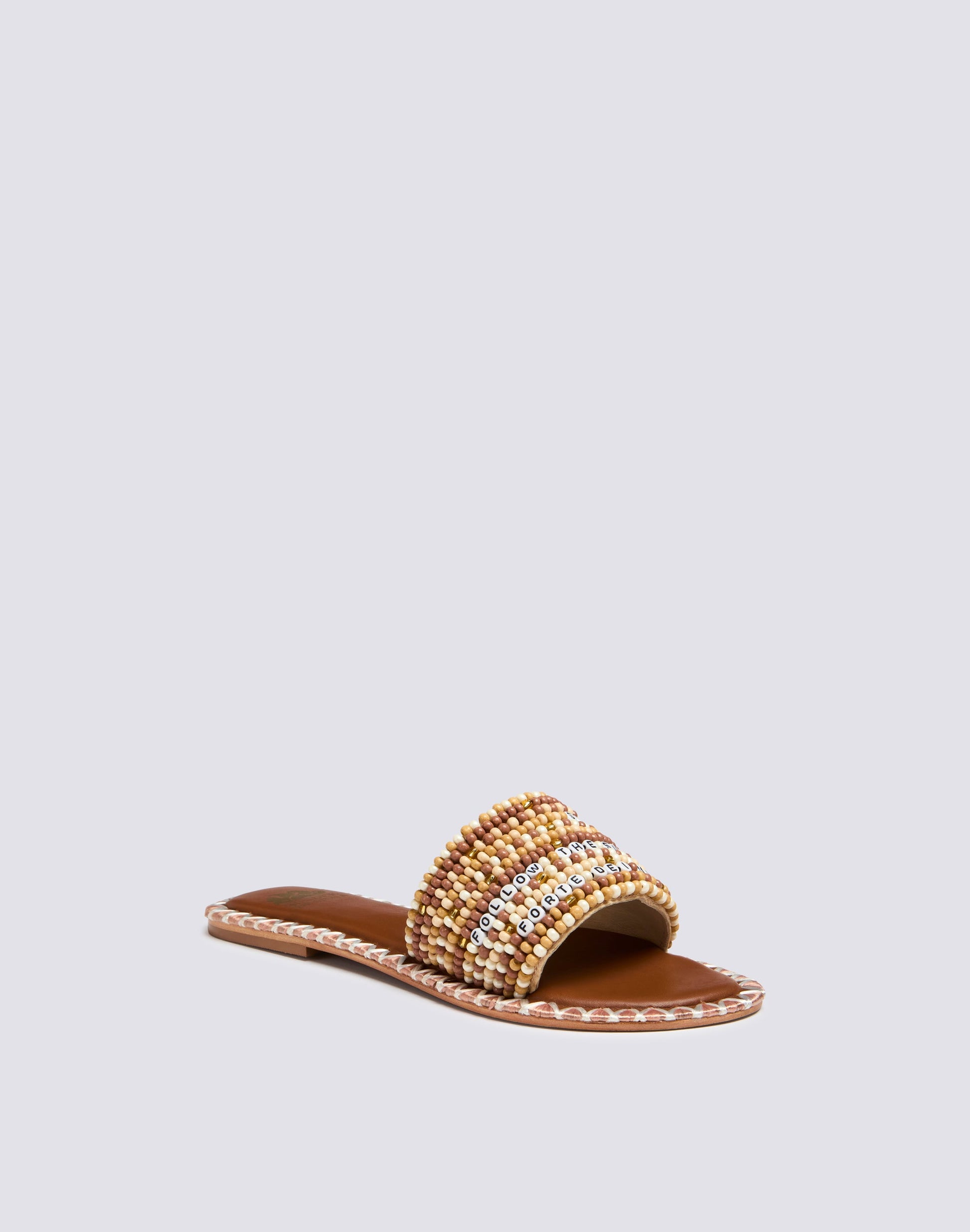 CIABATTA A FASCIA RICAMATA CON PERLINE FORTE DEI MARMI