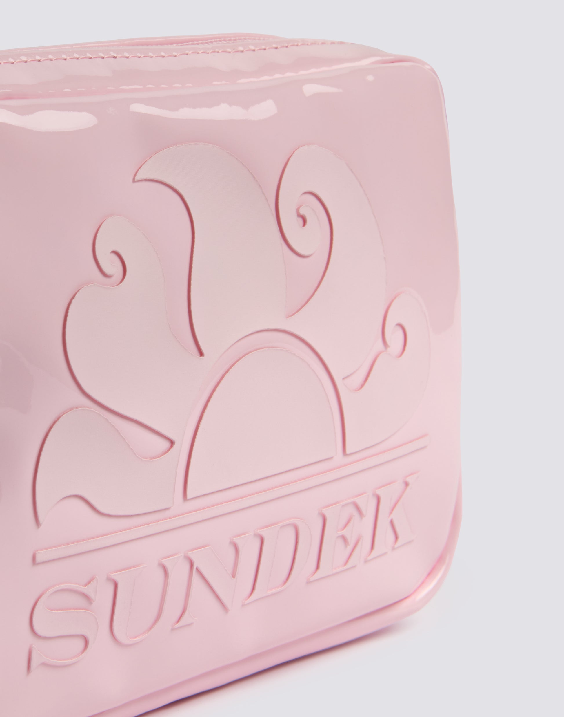 Boston pochette dalla texture shiny con zip e asola passamano.