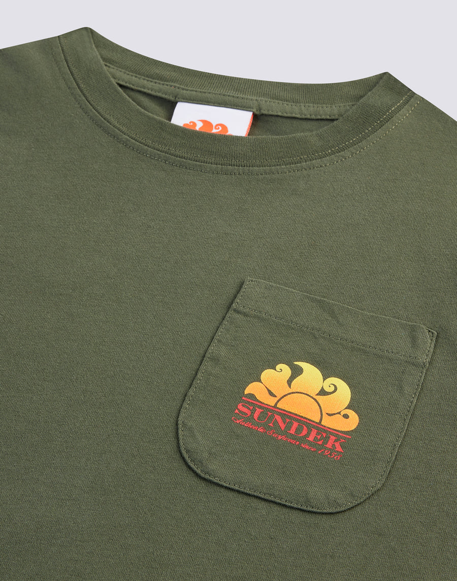 A scuola, nel tempo libero e in vacanza sarà la T-shirt che personalizzerà i look del tuo piccolo. Il logo sfumato sul retro è protagonista di questo modello con taschino sul petto. Facile da abbinare e confortevole da indossare.