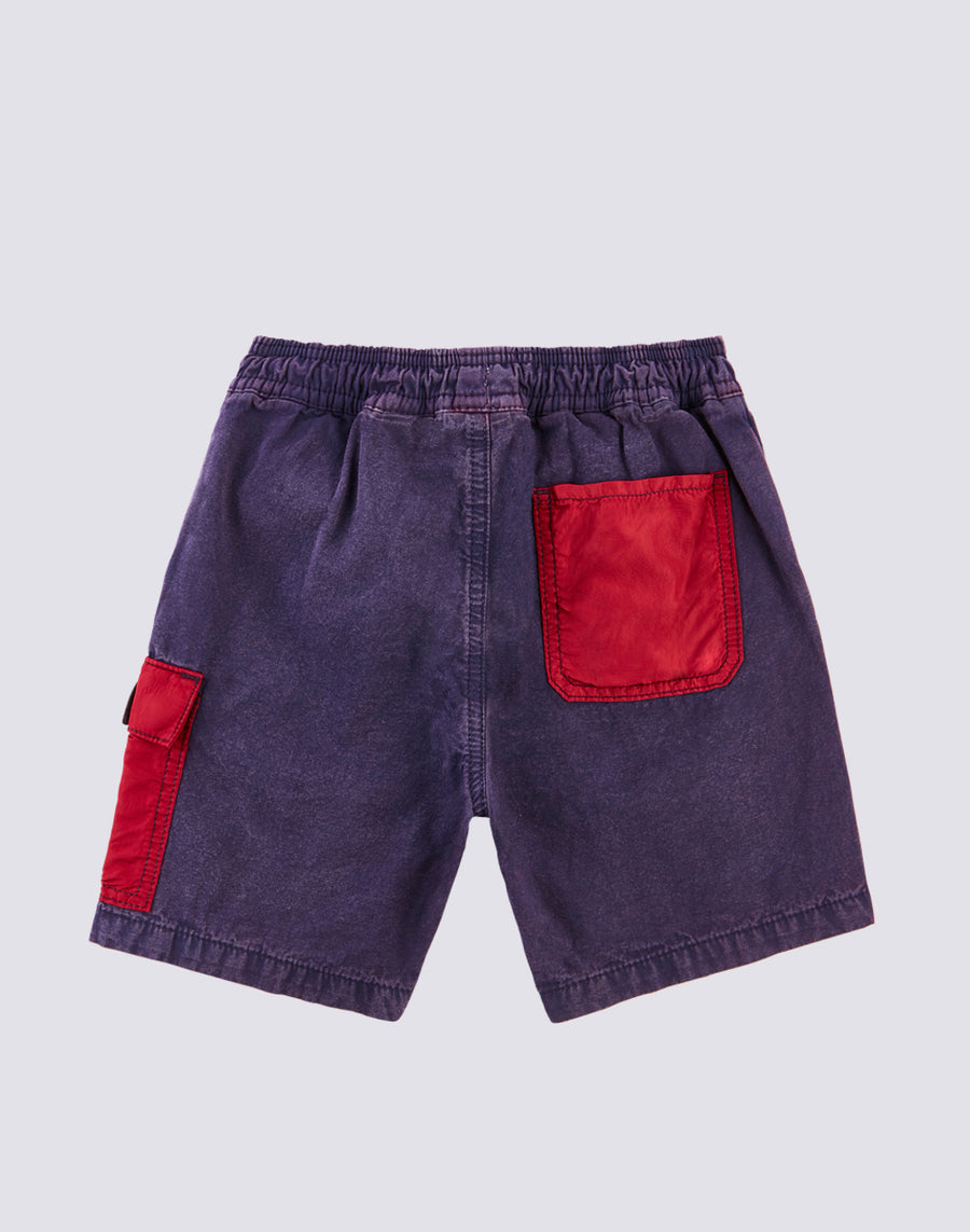 Shorts cargo in cotone a vita elasticizzata, con tasche in nylon e patch Sundek. Ideali per giochi e passeggiate, da abbinare a una t-shirt.