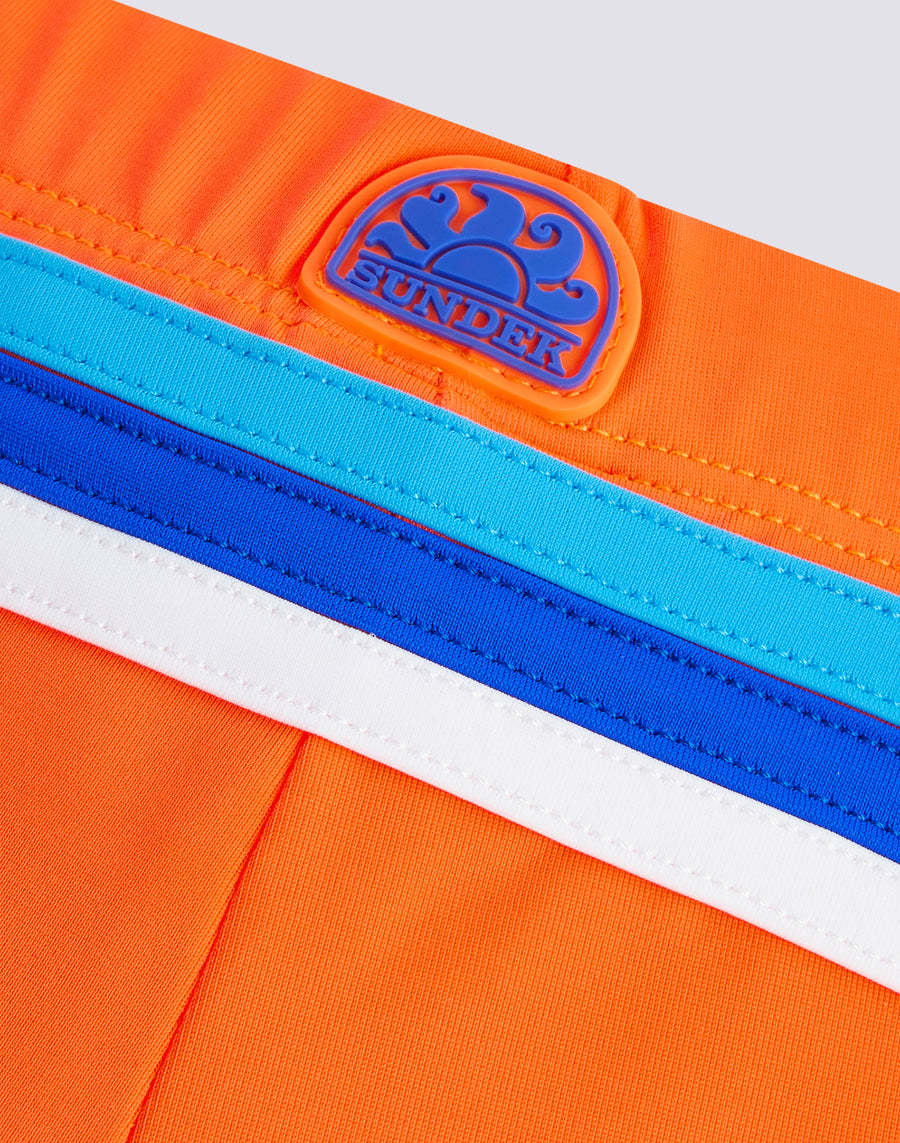 Il boxer mare da bambino che punta tutto sul colore e non dimentica l'ambiente, perché è realizzato in nylon rigenerato ECONYL®. Comodo grazie all’elastico in vita e al laccio regolabile, è il costume che il tuo bimbo potrà indossare con facilità per giocare e fare il bagno.