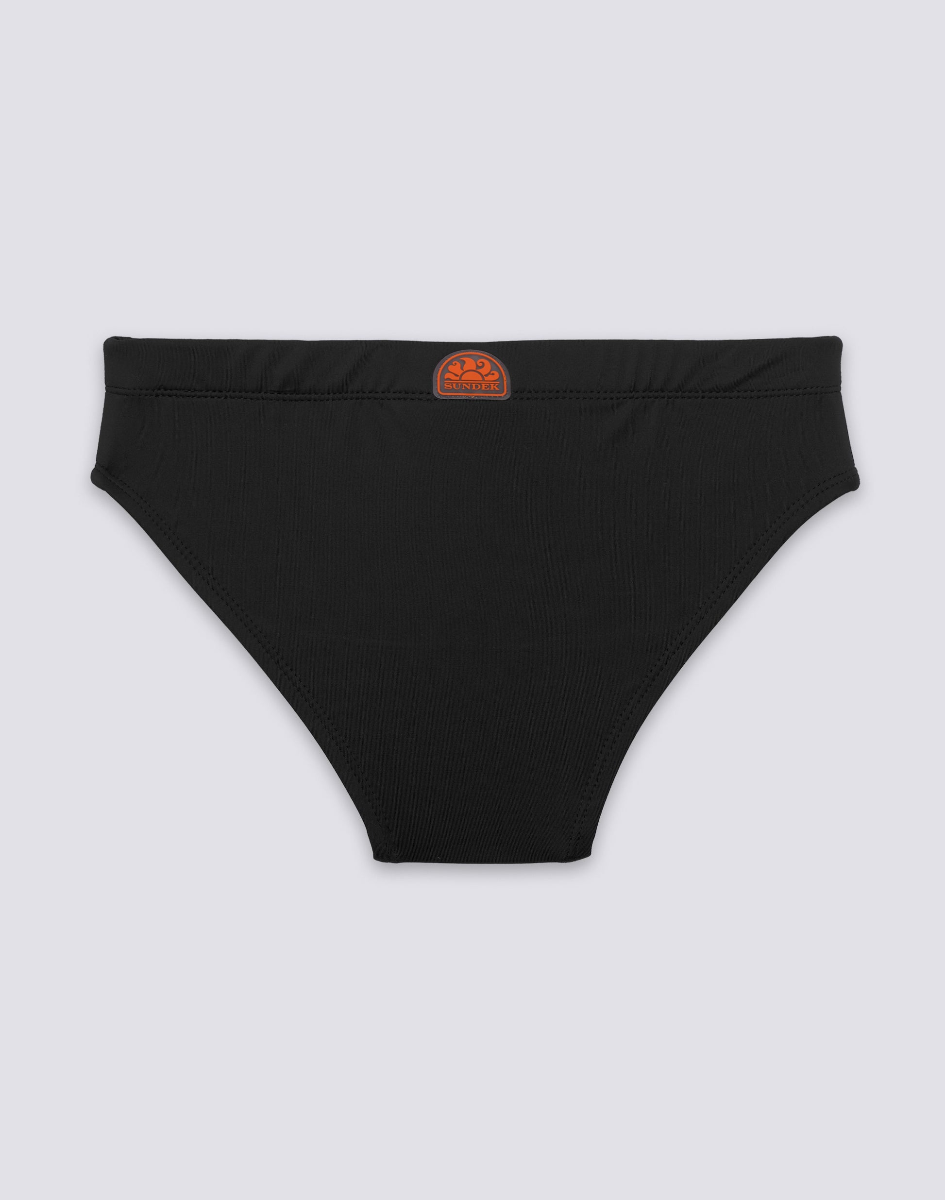 Immergiti nei colori dell'arcobaleno. Costume mare slip bambino in nylon Econyl rigenerato, con dettaglio tricolore su un lato.