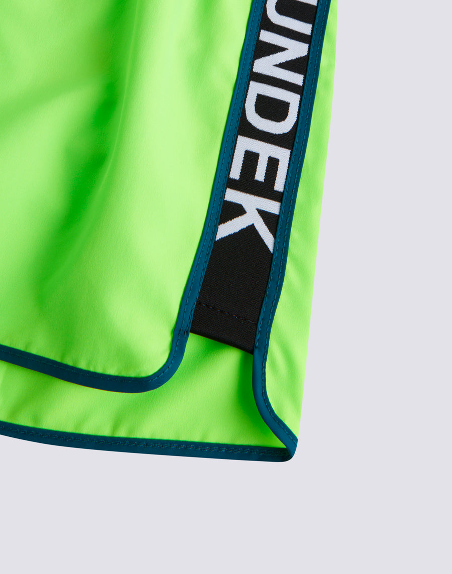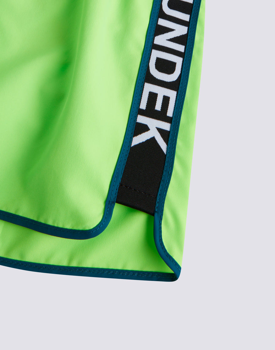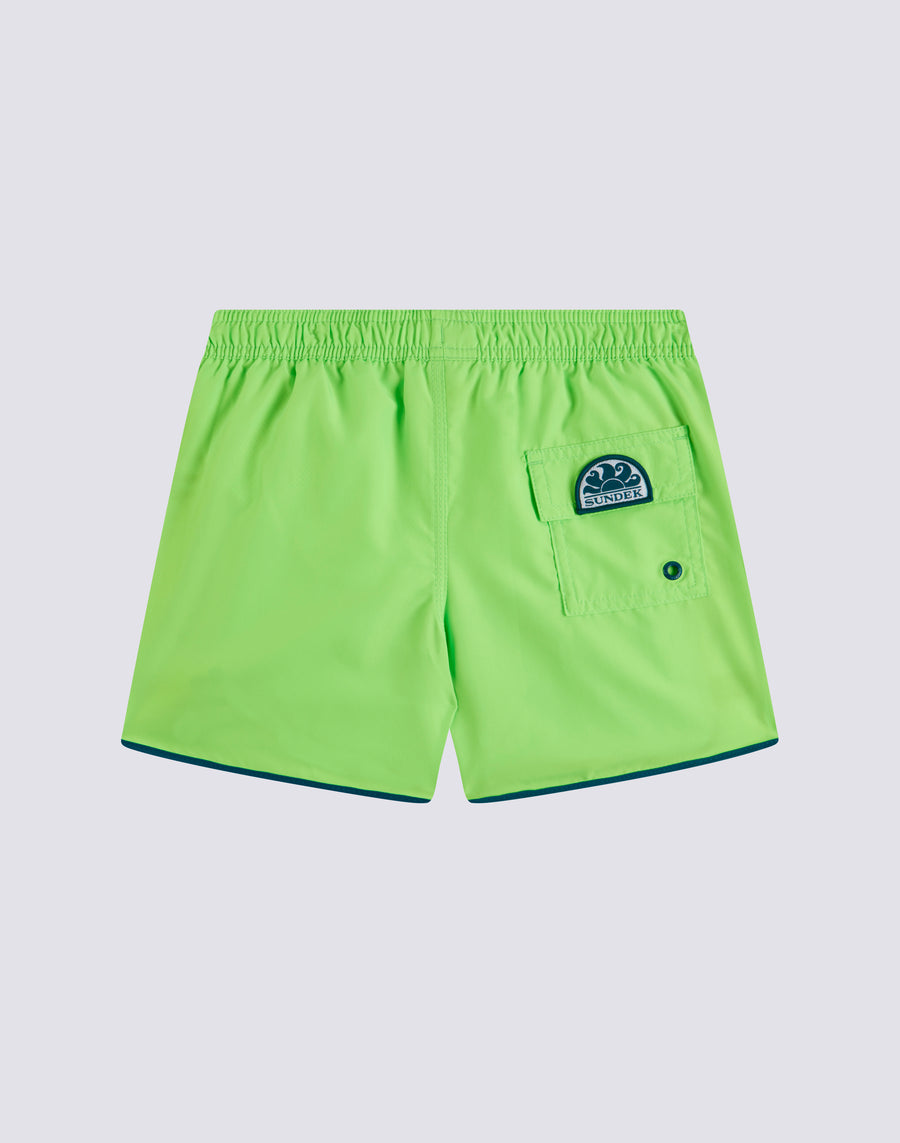 Costume da bagno da bambino con coulisse e vita elasticata, in tessuto Poliestere leggero. Dotato di spacchetti laterali arrotondati con profili a contrasto. Lunghezza esterno coscia 11.25"/28,5 cm (in taglia 6 anni).