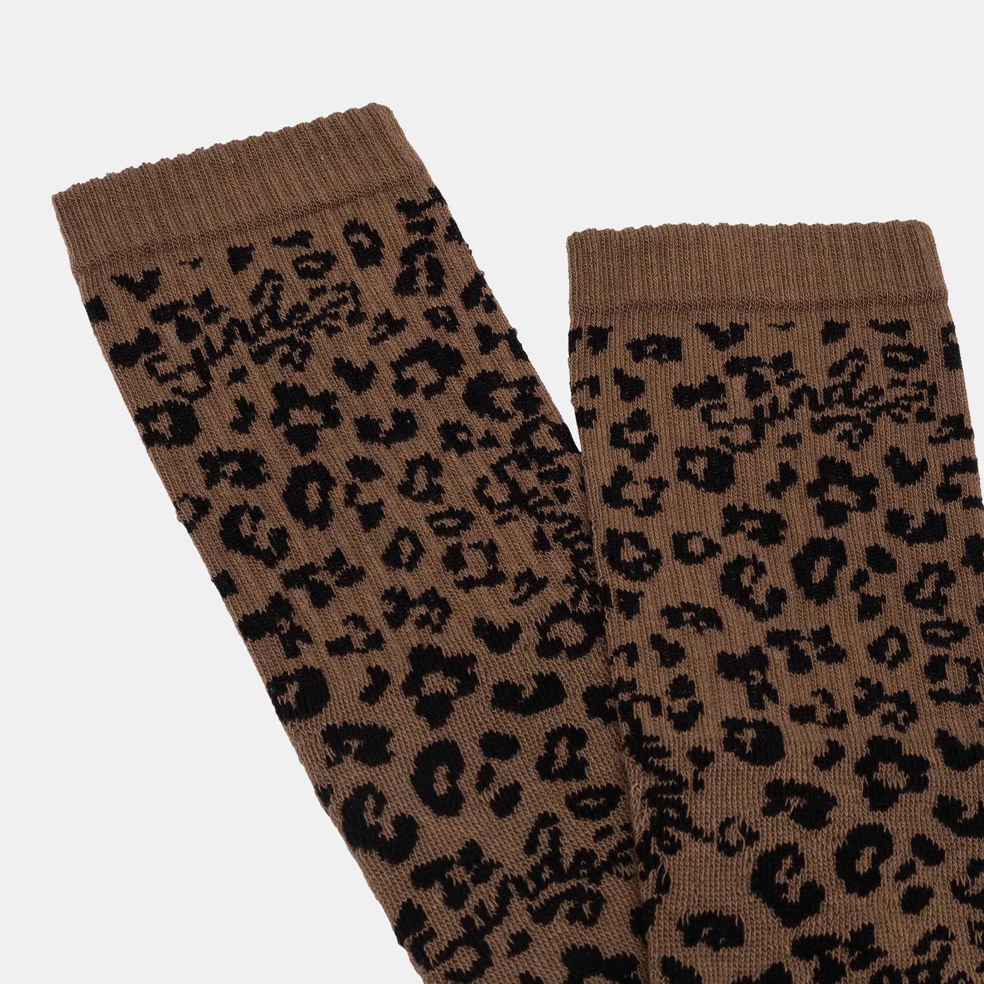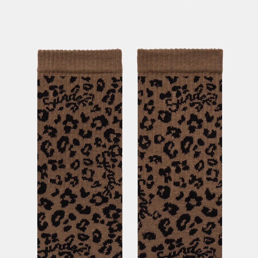 Calzini jacquard in morbido cotone con gambale a costine e stampa leopardo