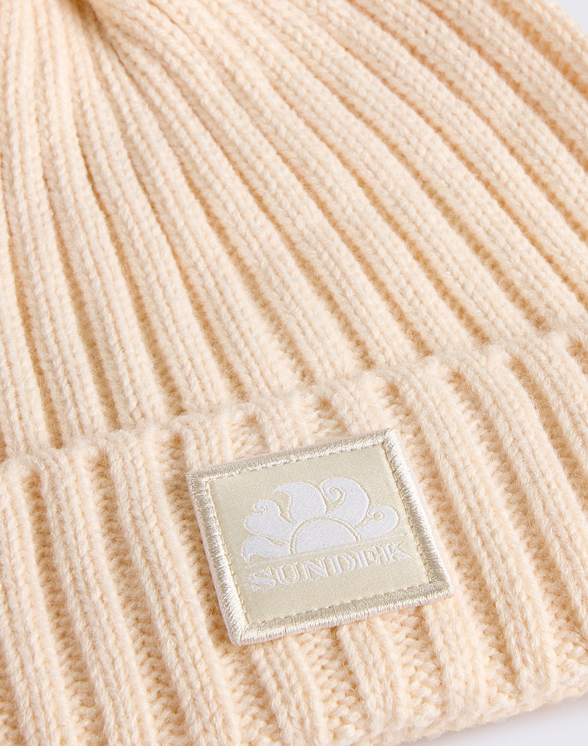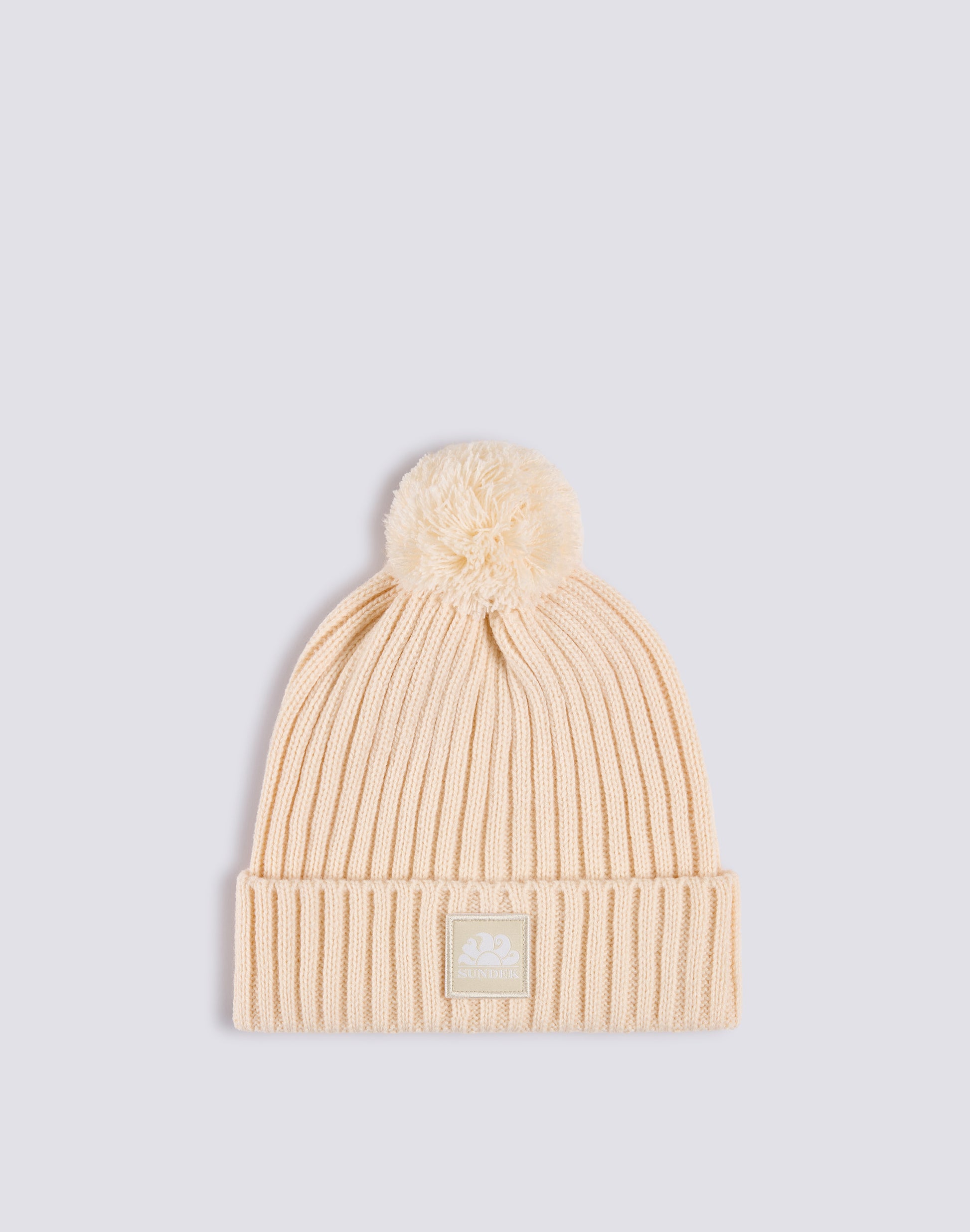 Filato morbidissimo per questo beanie con pom pom versatile dallo spirito sporty ricercato.