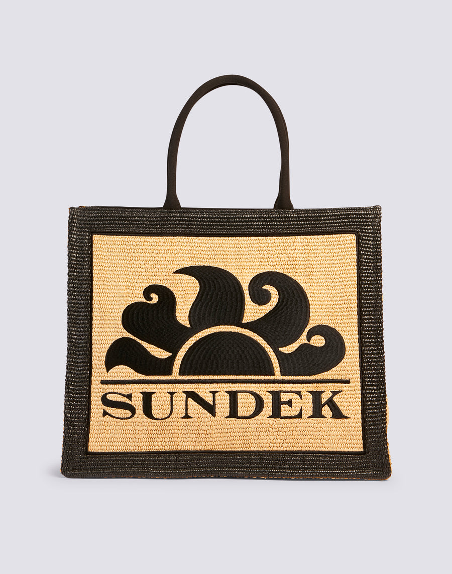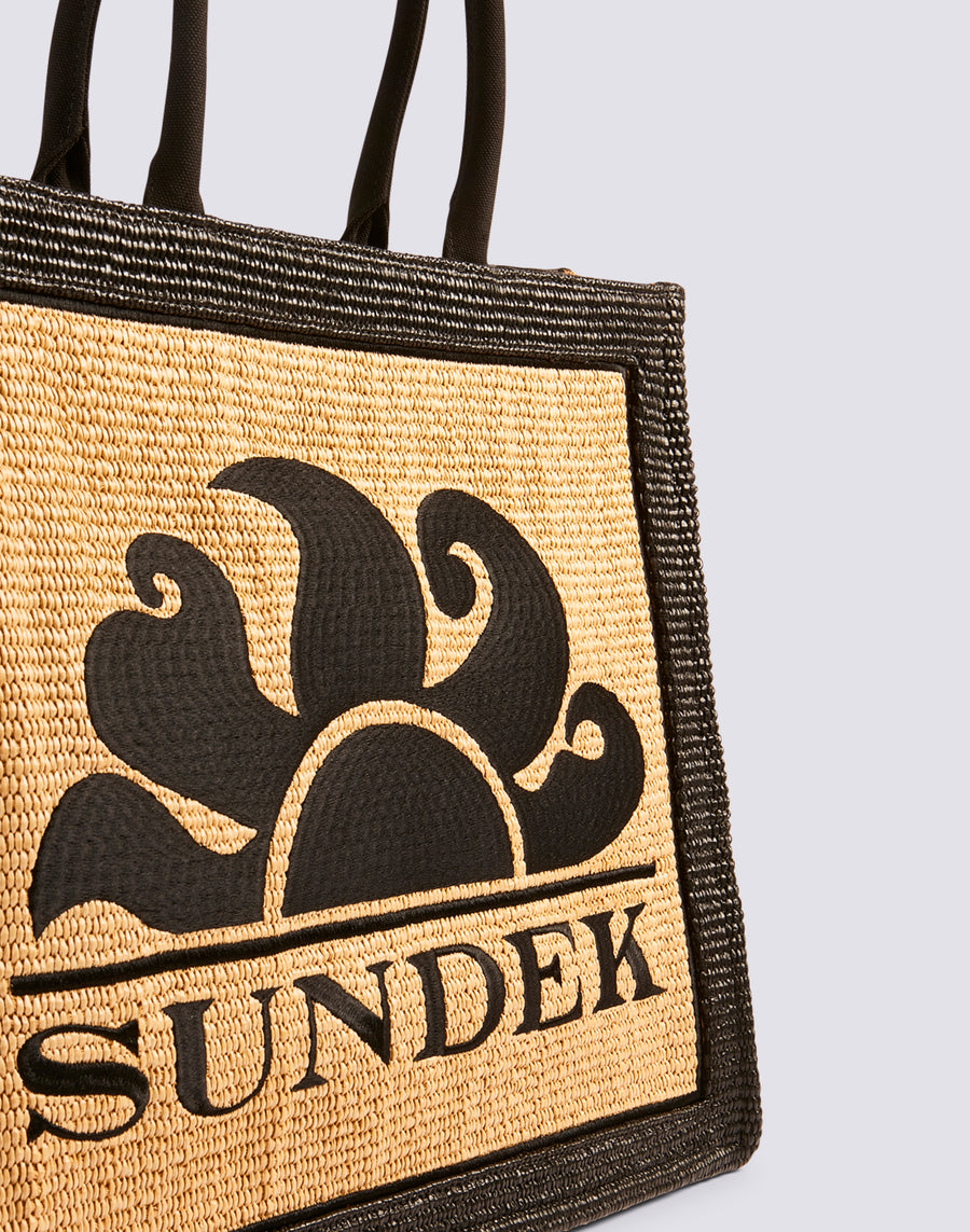 SHOPPING BAG IN RAFFIA CON LOGO RICAMATO