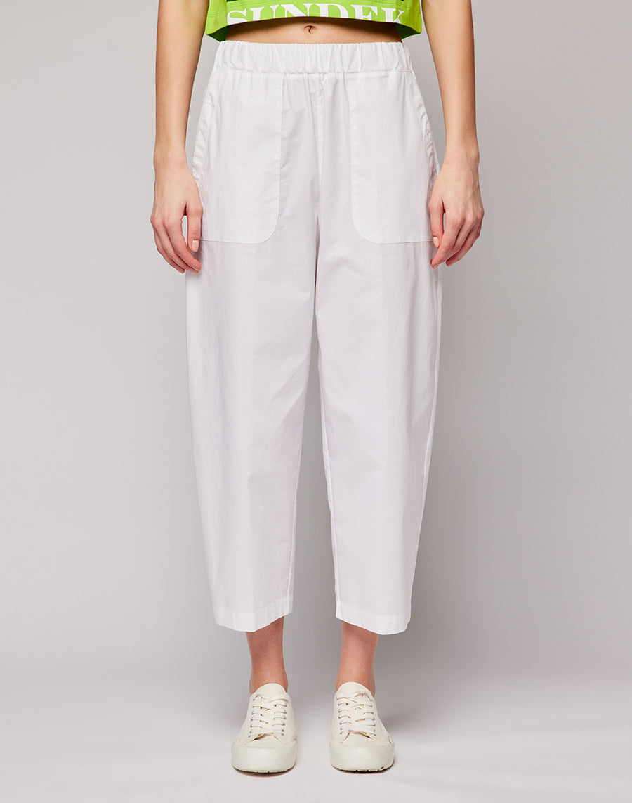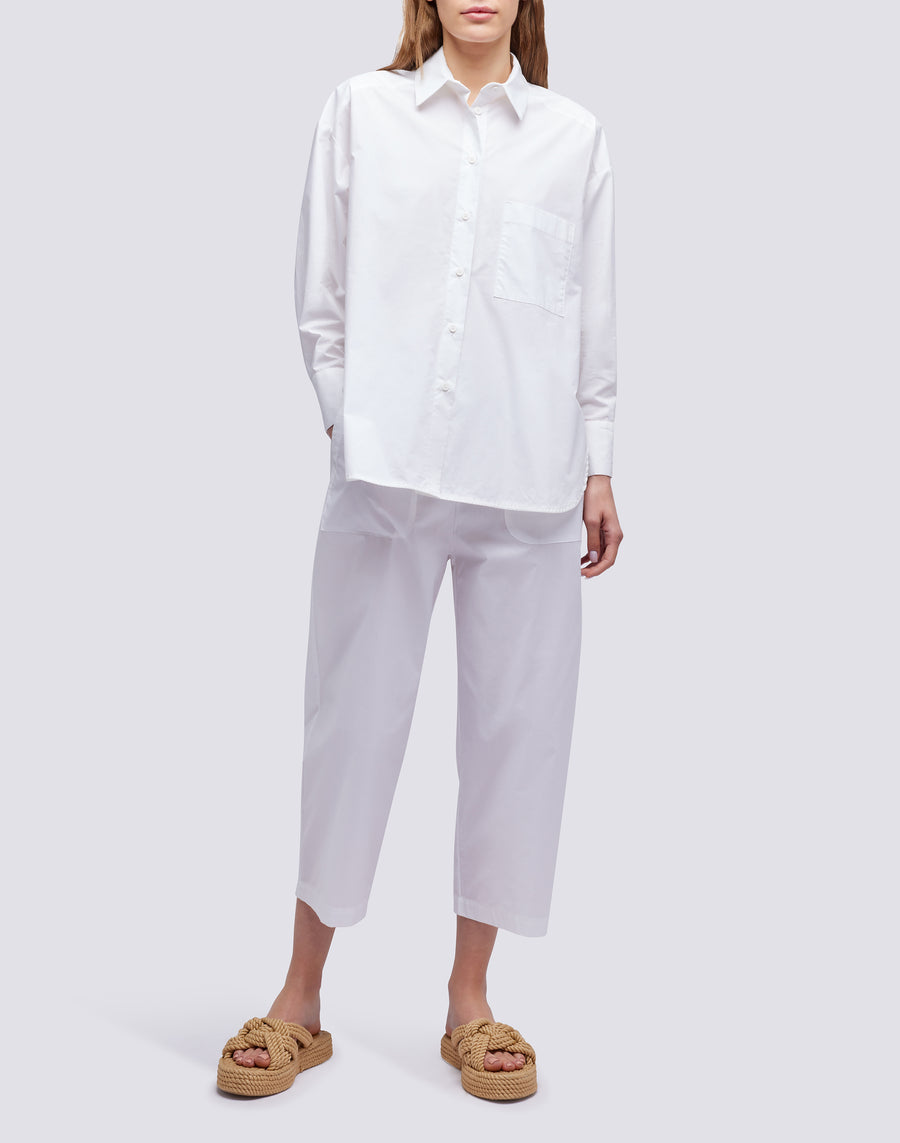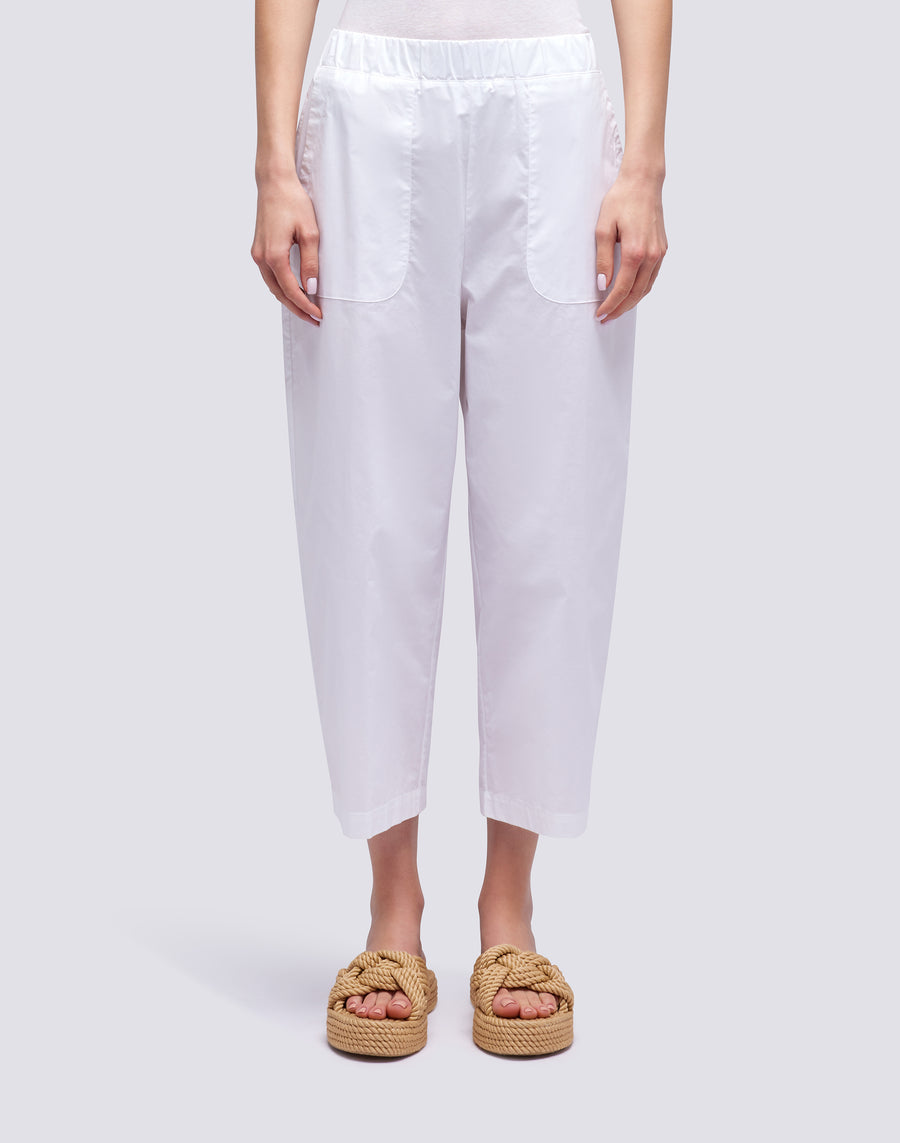 Pantaloni multitasking in popeline di cotone eleganti e freschi. Elastico alto in vita e coulisse interna regolabile per il massimo comfort.