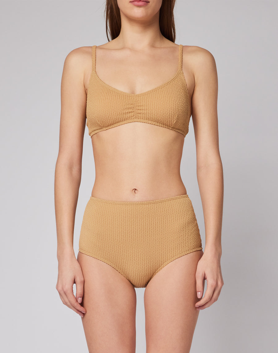 Slip a vita alta in tessuto increspato double leggero e confortevole. Abbinalo al top con ferretto e coppa sagomata per un completo raffinato.