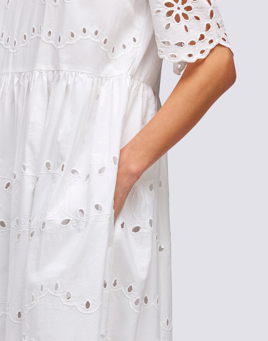 Abito lungo da donna in cotone sangallo, elegante e ideale per le occasioni più speciali.