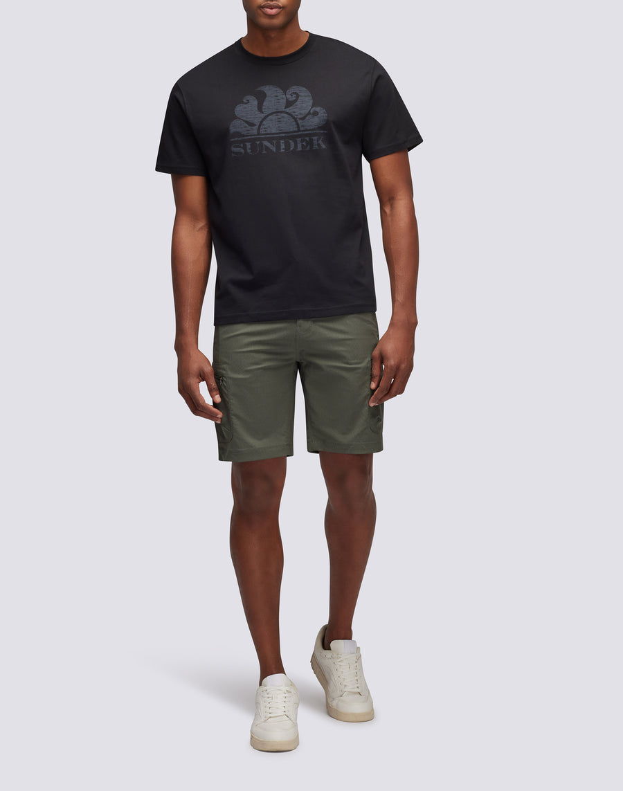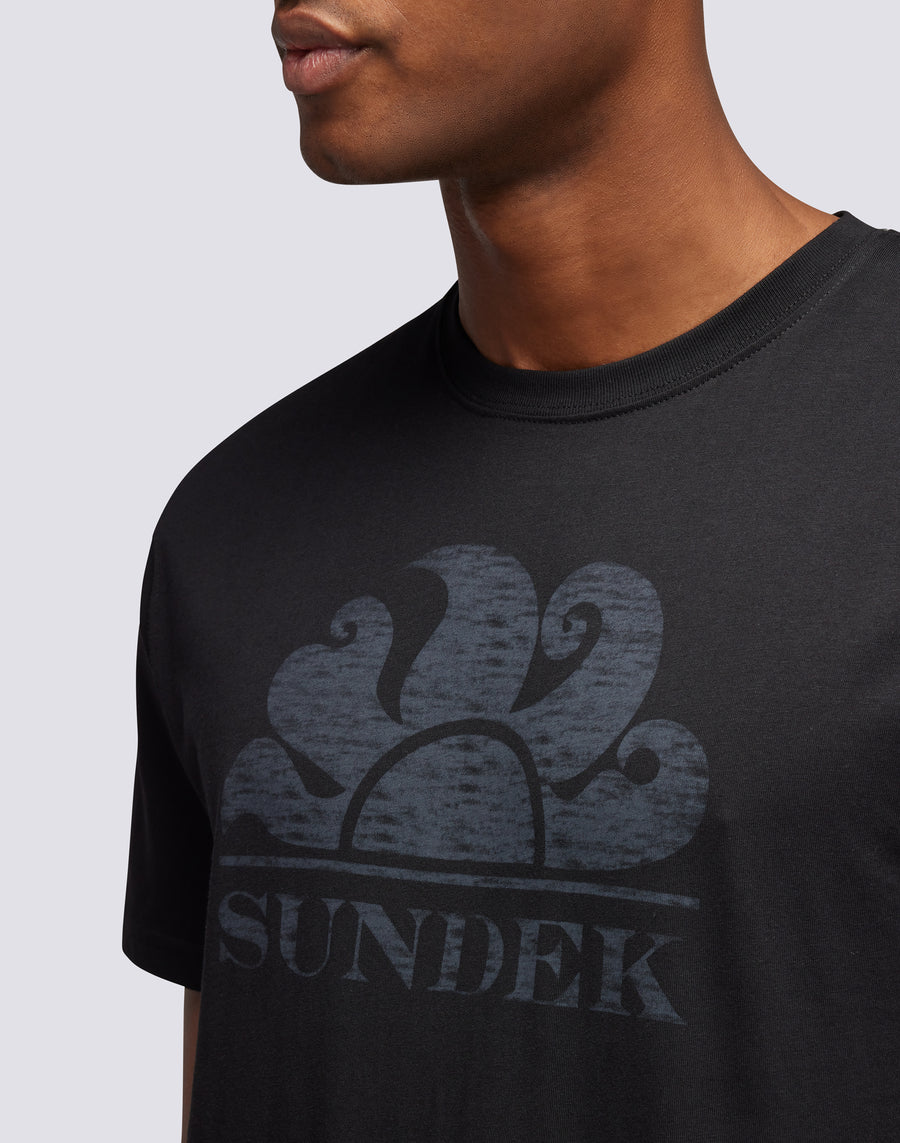 Facile da abbinare nei tuoi look casual, perfetta come base sotto a pull e cardigan. La t-shirt casual da uomo in cotone con maxi logo stampato tono su tono è un jolly del guardaroba, adatta anche in viaggio.