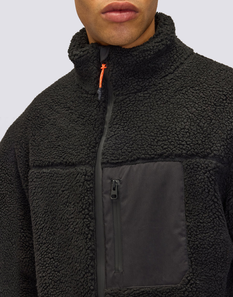 Giacca corta teddy da uomo con collo in piedi, rifinita in pezza, che dona leggerezza e una mano soffice al materiale. Capo ricco di dettagli tecnici, pensati per renderlo funzionale nella quotidianità. Vestibilità regular. Grado di calore medio.