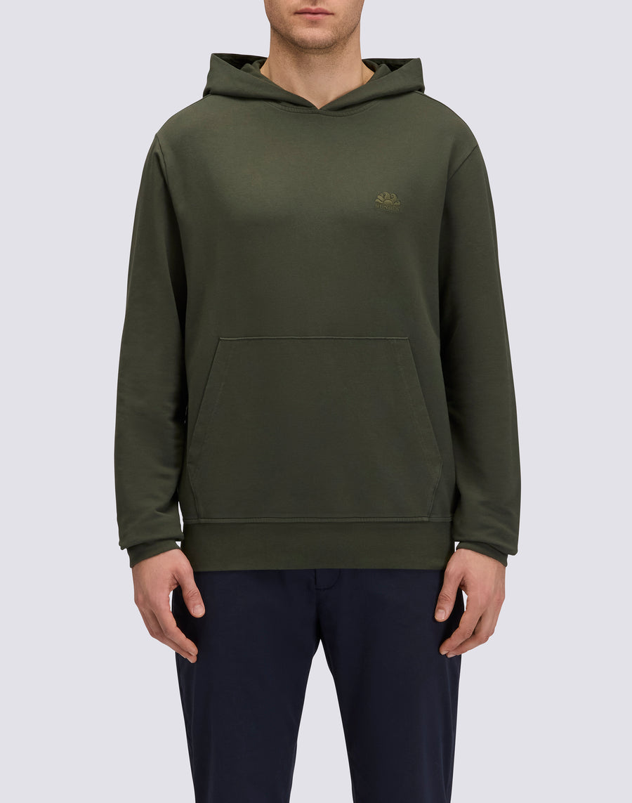 FELPA UOMO DEGARZATA CON CAPPUCCIO E TASCA A MARSUPIO