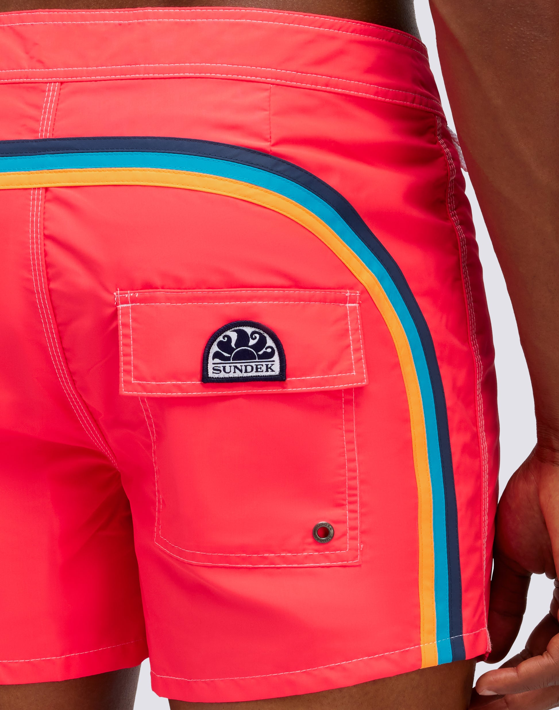 Energia vibrante, colore intenso e l’iconico arcobaleno Sundek che fa capolino per questo costume boxer da uomo. E' realizzato nel nostro tessuto storico nylon taffetà, dalla mano serica confortevole e ad asciugatura rapida, mentre le cuciture a tre aghi lo rendono resistente vacanza dopo vacanza. Lunghezza 35 cm (taglia M), misurati sul lato esterno della gamba.