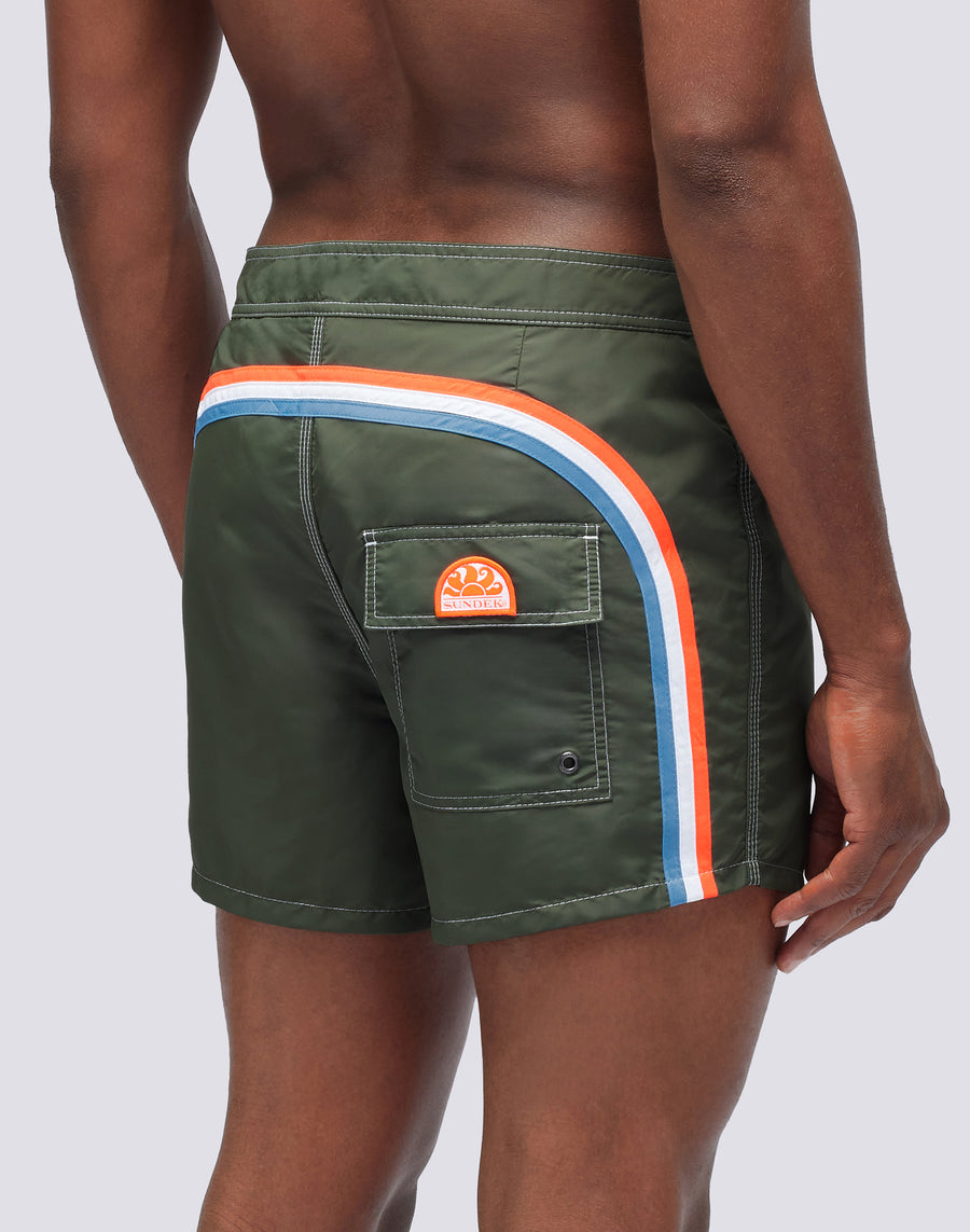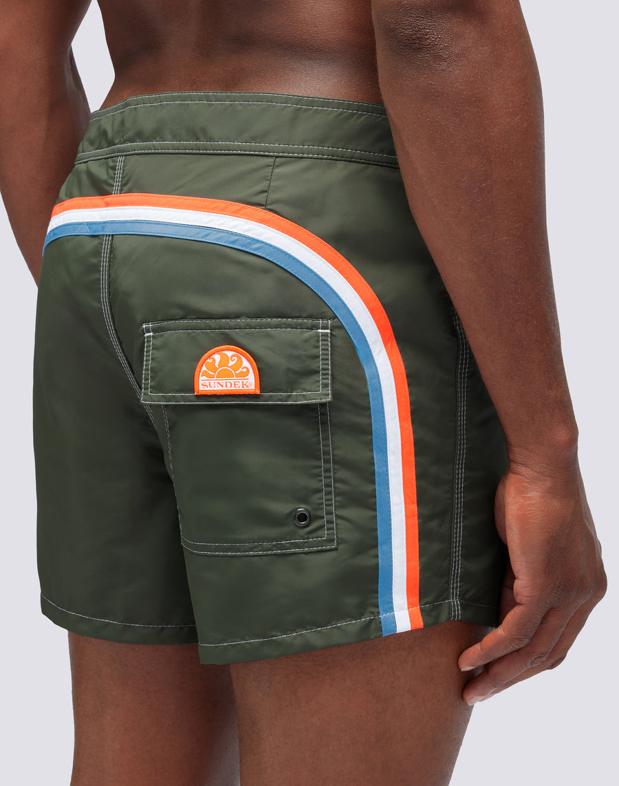 Energia vibrante, colore intenso e l’iconico arcobaleno Sundek che fa capolino per questo costume boxer da uomo. È realizzato nel nostro tessuto storico nylon taffetà, dalla mano serica confortevole e ad asciugatura rapida, mentre le cuciture a tre aghi lo rendono resistente vacanza dopo vacanza. Lunghezza 35 cm (taglia M), misurati sul lato esterno della gamba.