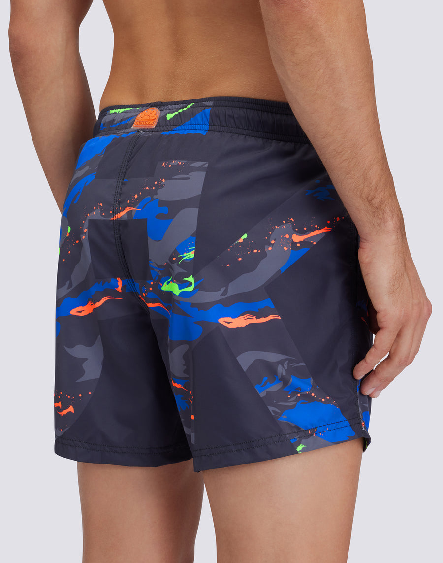 COSTUME DA BAGNO CORTO VITA ELASTICATA REPREVE® CON STAMPA MACRO LOGO