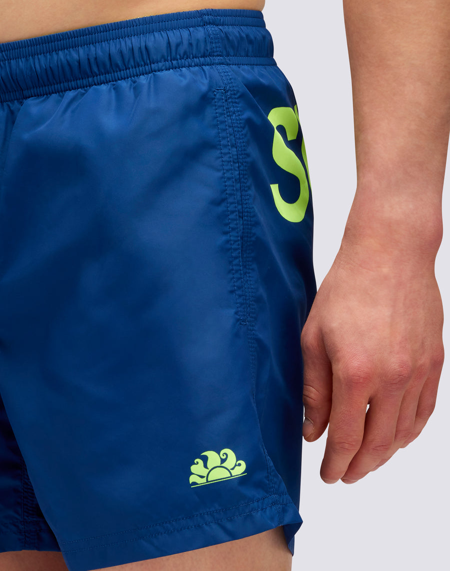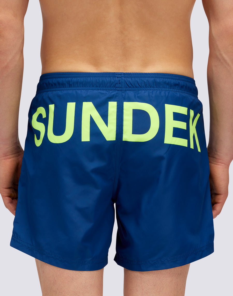 Esprimi il DNA Sundek. Costume corto a vita elasticata a tinta unita con stampa SUNDEK sul retro. Le cuciture a 3 aghi offrono un'elevata resistenza nel tempo. Tessuto Poliestere riciclato.