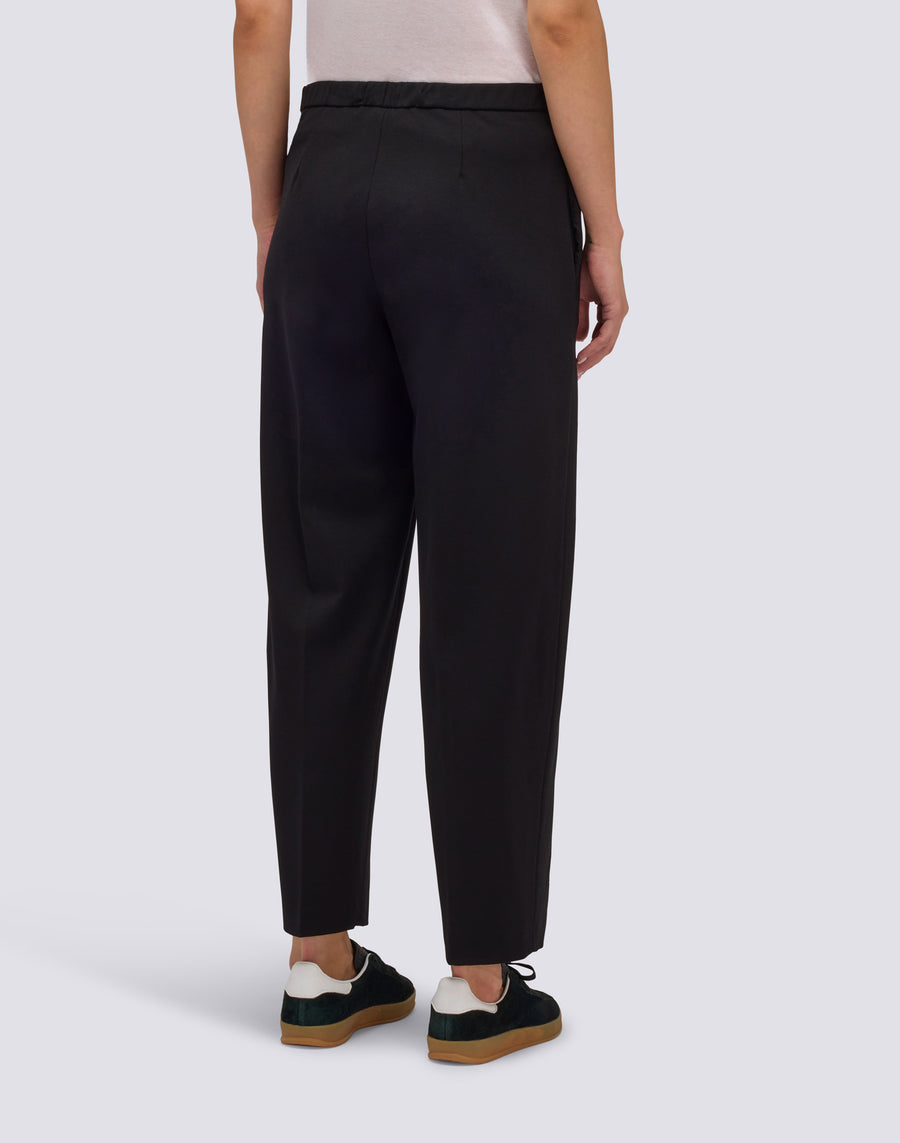 Pantaloni lunghi da donna in Punto Milano con vita semi elastica, piega frontale centrale e tasche laterali. Morbidi, vestibilità relaxed.