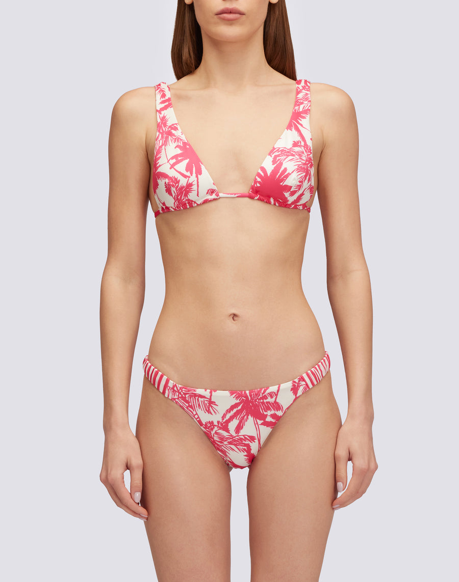 Il top a triangolo americano Marva, con la stampa Tropic Savana, è perfetto per la spiaggia o la piscina. La sua vestibilità slim valorizza la figura e lo rende un costume mare ideale. Aggiungi un tocco di colore e stile al tuo look estivo con questo top.